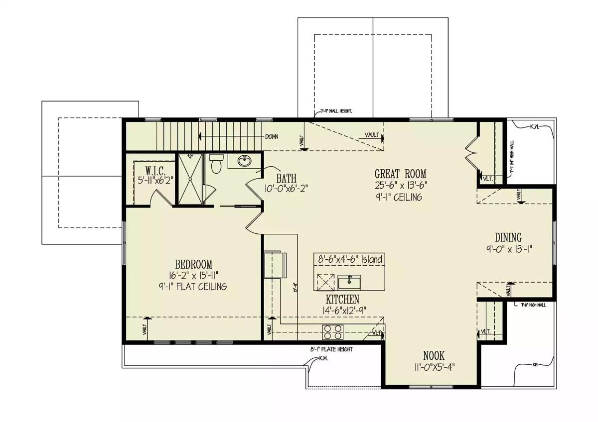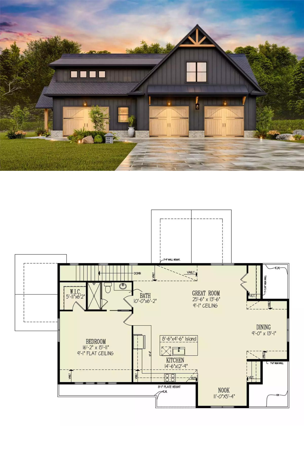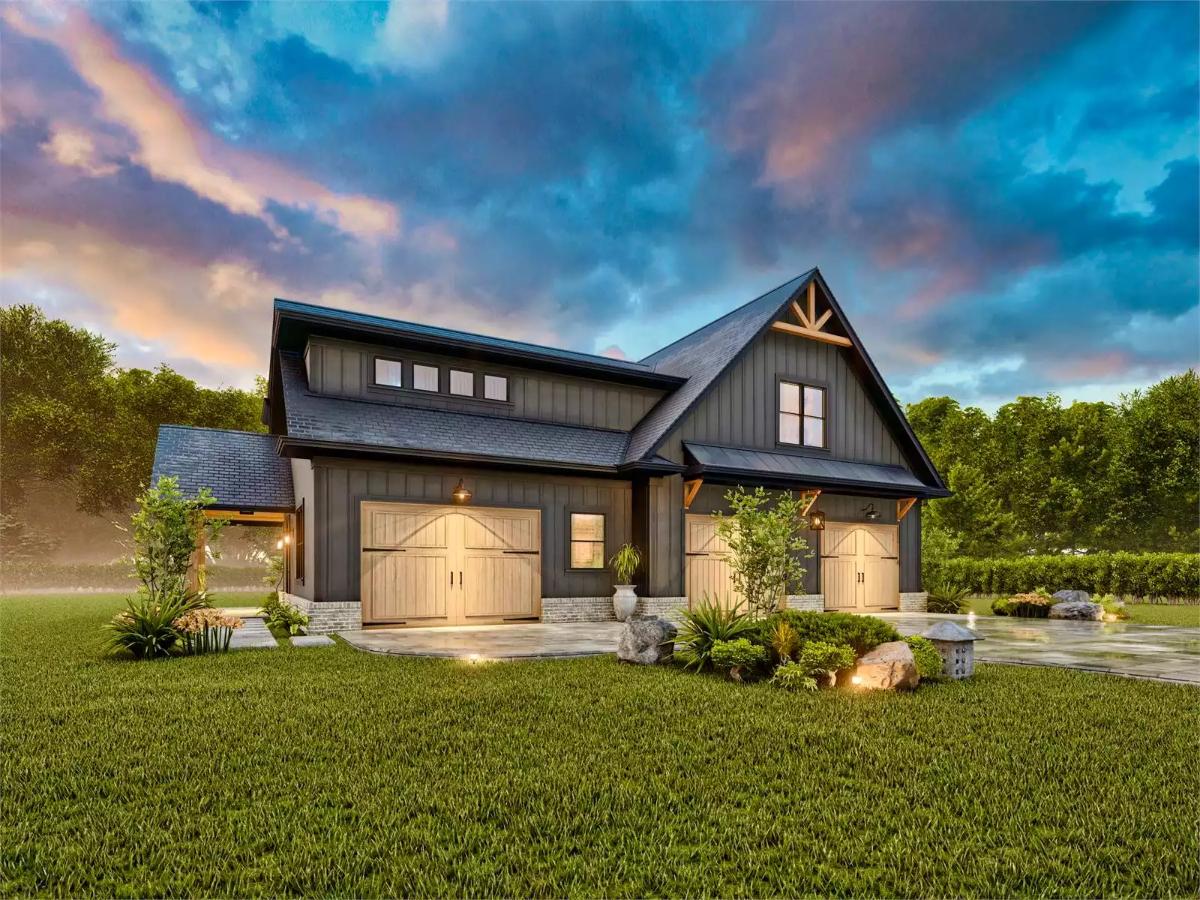 Discover Coldwater, a sophisticated detached garage plan spanning 1,544 sq. ft. This innovative design features a spacious 3-car garage alongside a thoughtfully integrated living space.