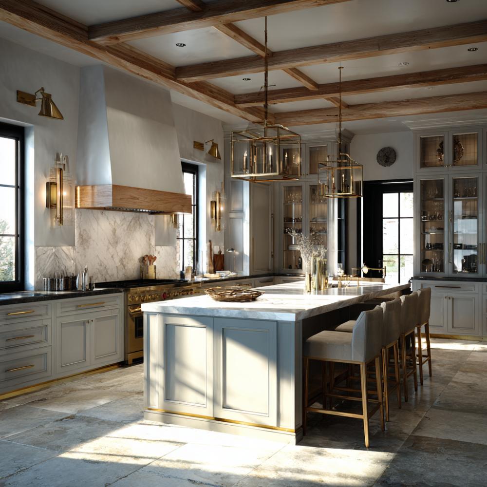 Rustic Elegance Meets Modern Luxury in Exposed Beam Kitchen Design