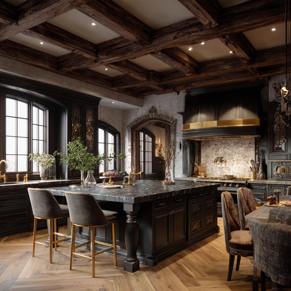 Rustic Elegance Meets Modern Luxury in Exposed Beam Kitchen Paradise