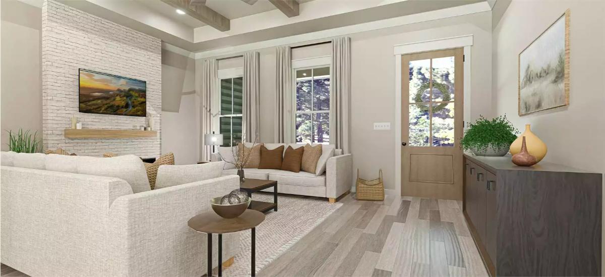Explore the allure of Longcreek, an enchanting one-story, 1,834 square foot country home that beckons you with its picturesque front-covered porch. Upon entering, the space unfolds into a harmonious open floor plan, seamlessly integrating the living and dining areas, creating a roomy and light-filled atmosphere.