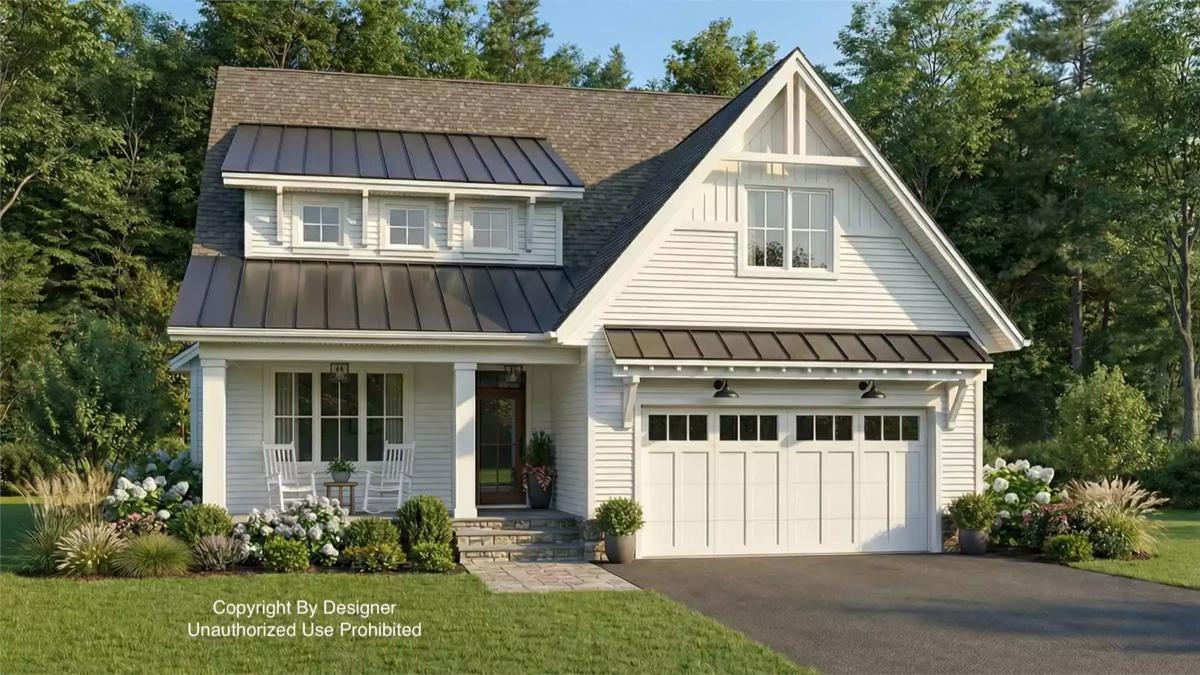 Farmhouse Style 3-Bedroom Home with 2-Car Garage and Front Porch (Floor Plan)
