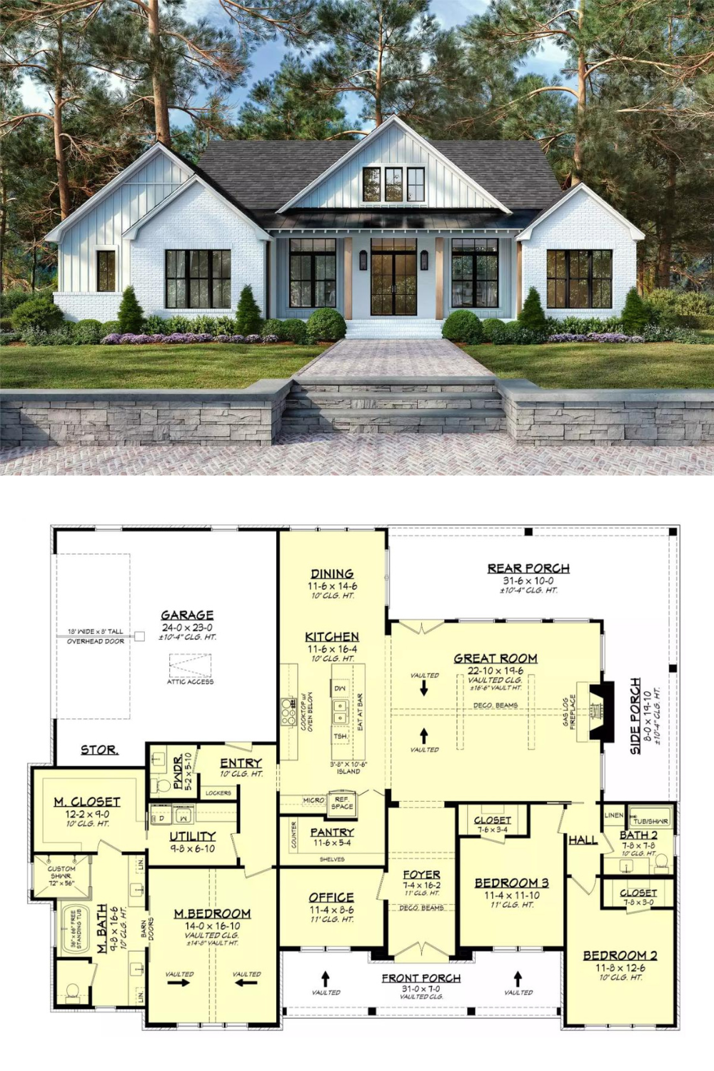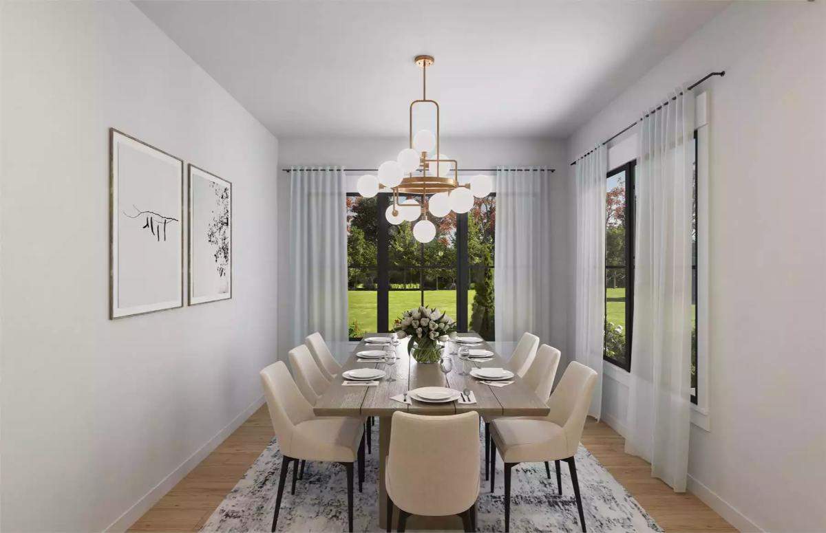 Welcome to Fairgrounds, a stunning transitional modern farmhouse designed to blend rustic charm with contemporary elegance. This open floor plan is perfect for modern living, featuring a Great Room with vaulted ceilings and decorative beams, bathed in natural light.