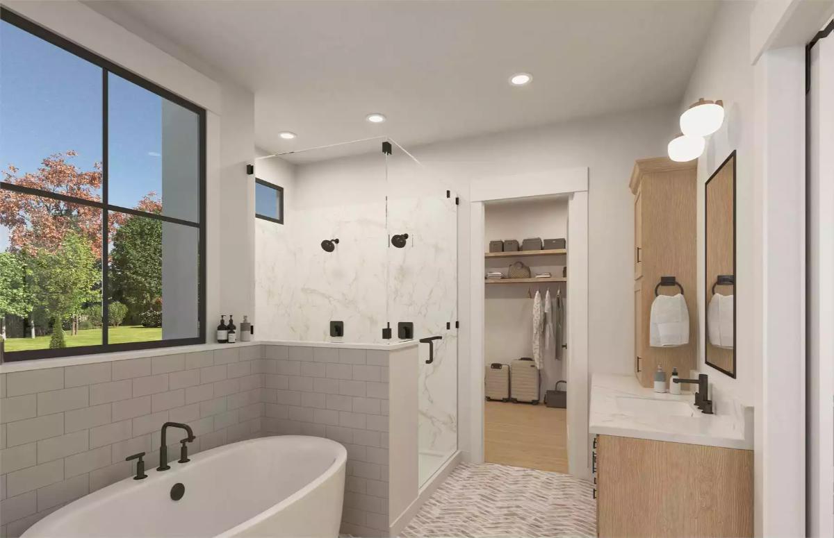 The highlight of Fairgrounds is the amazing oversized main suite, featuring a vaulted ceiling, separated dual vanities, a large custom walk-in shower, and a stand-alone tub, providing a spa-like experience in the comfort of your own home.