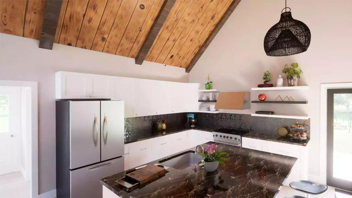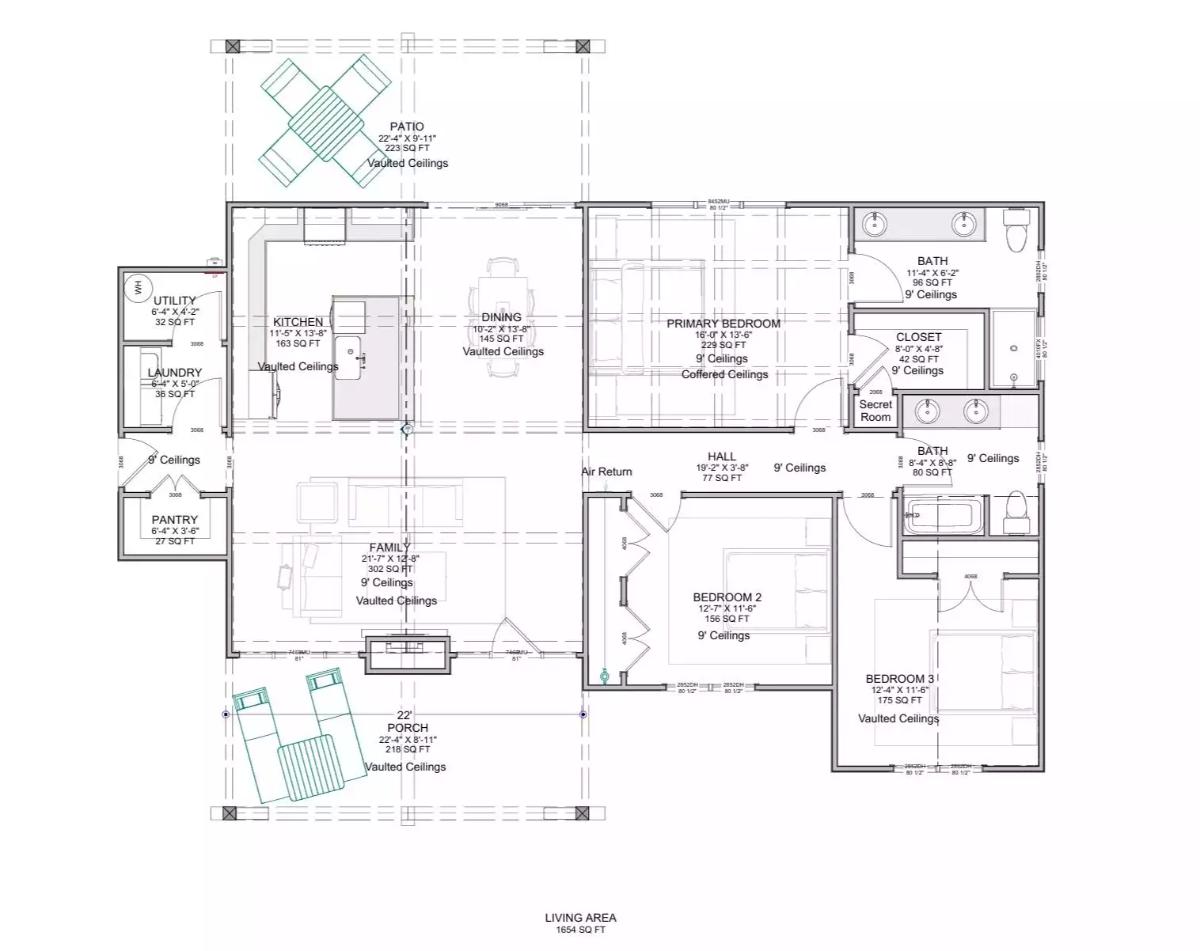 This charming 1,654 square feet home captures cozy livability and smart design in one welcoming layout. The L-shaped kitchen features a large island, peninsula with eating bar, and butlerโs pantry for extra prep and storage space, flowing seamlessly into the vaulted great room.
