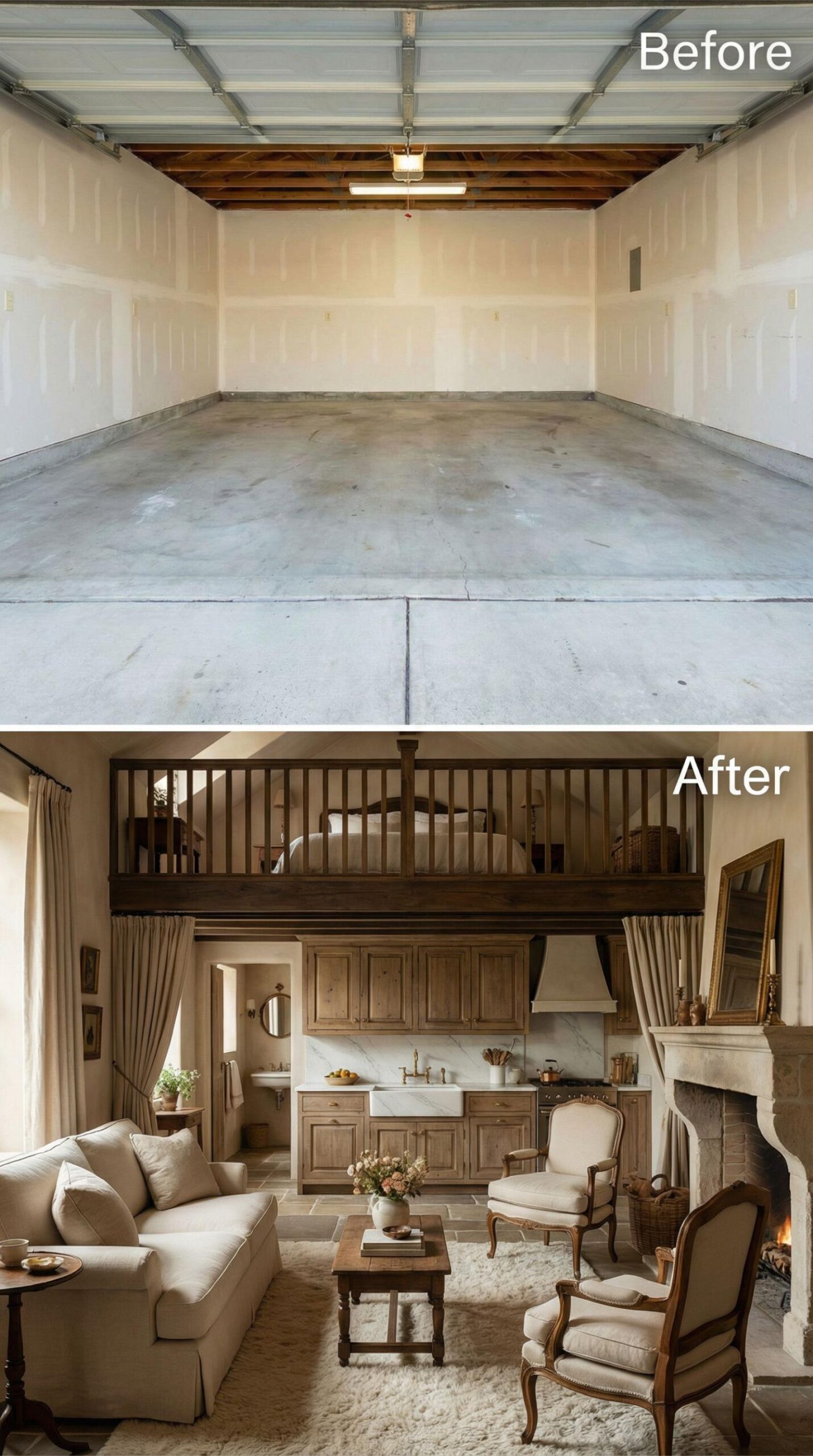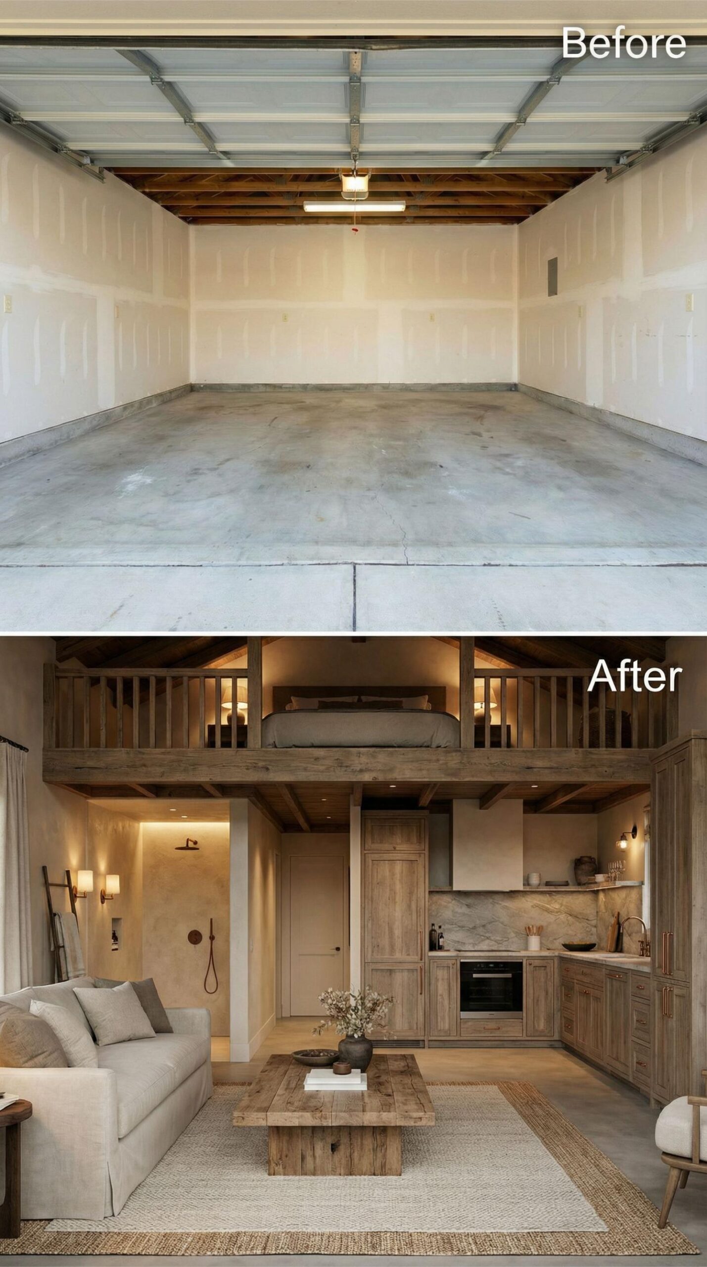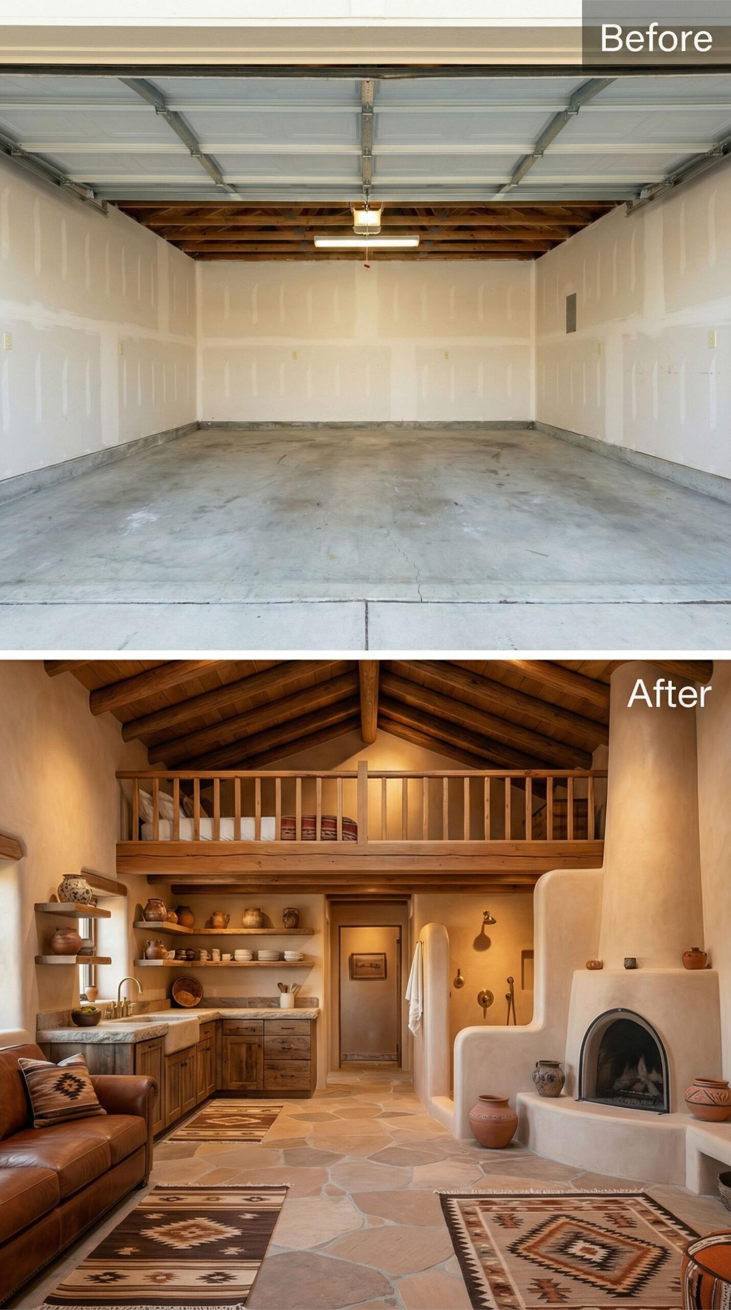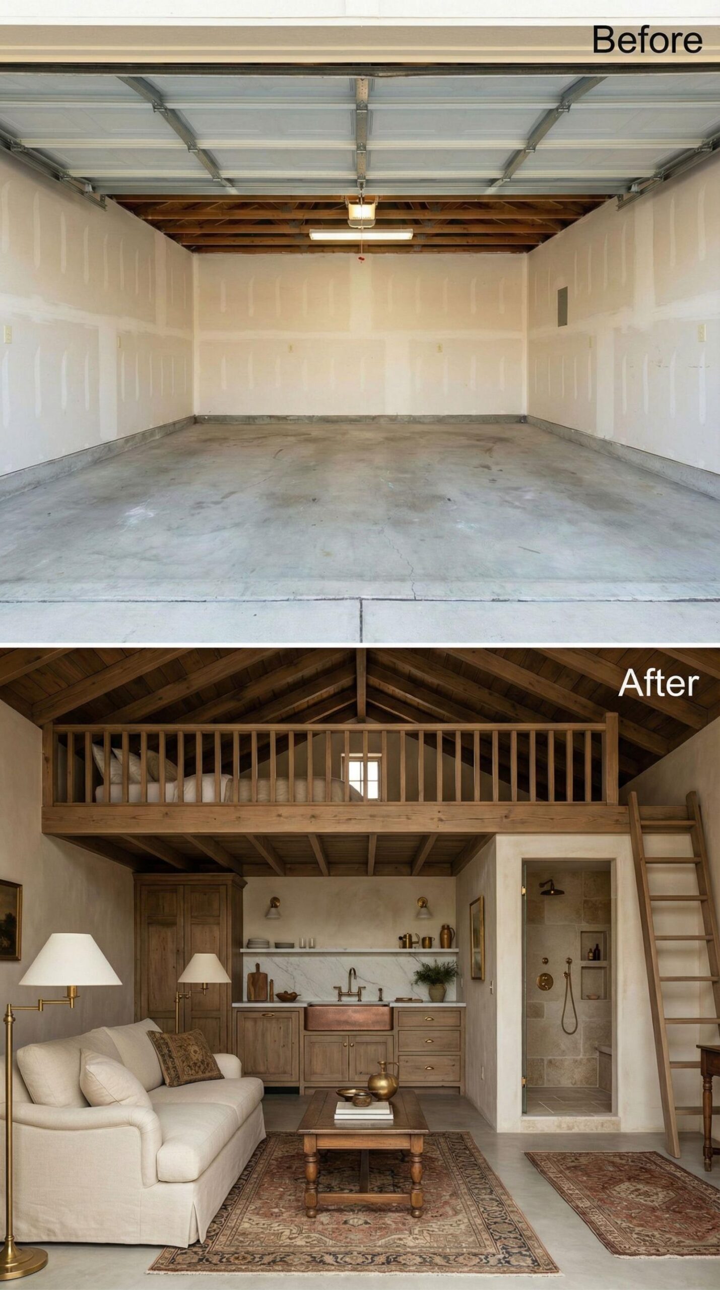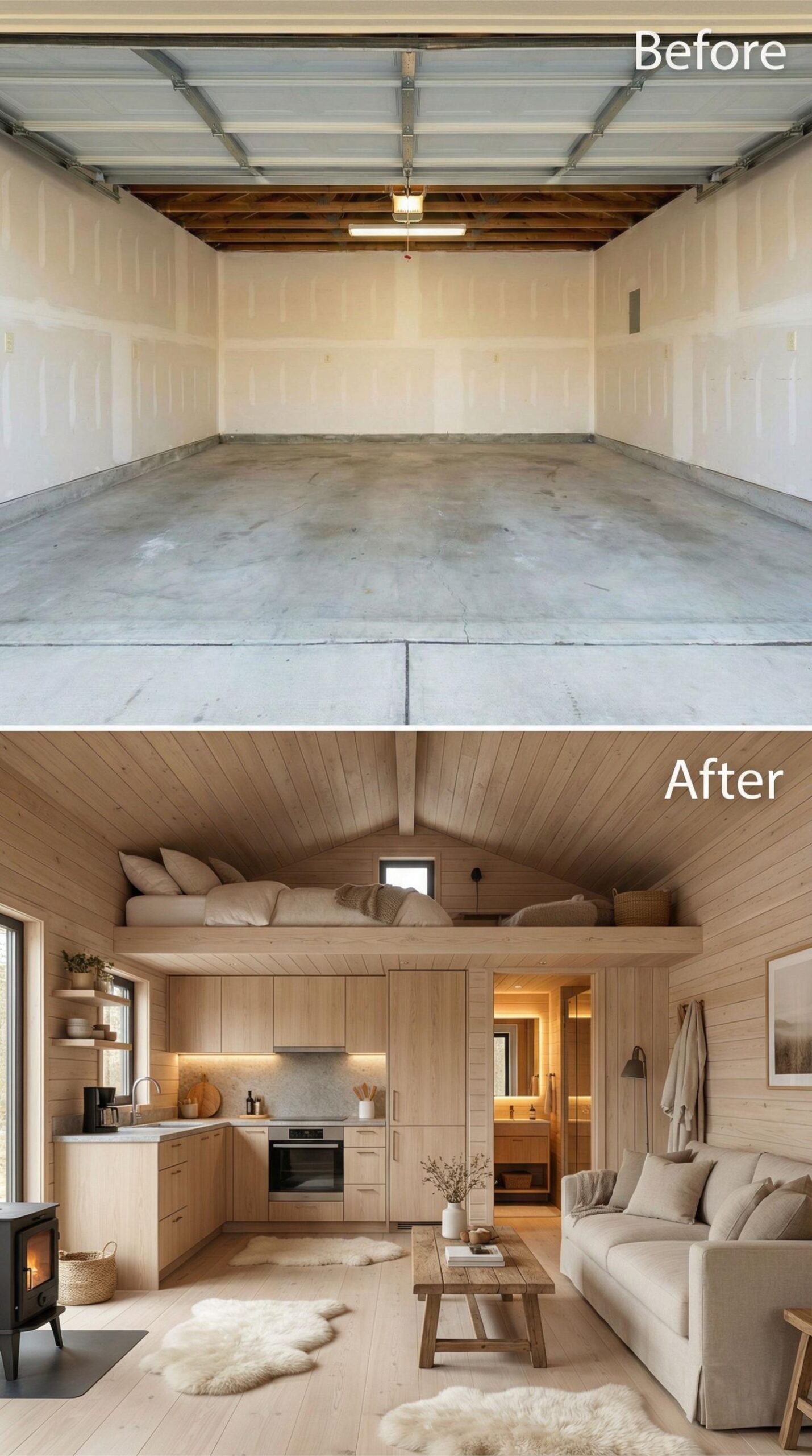 Once the kids moved out, we were left with a two-bay garage we barely used — and no clear idea how to turn it into something better. We liked the idea of converting it into an income-producing apartment, but had no clue how to design the layout, where the kitchen should go, or whether a sleeping loft would even work. So instead of guessing, we turned to AI. These 33 before-and-after garage transformations show what’s possible when the same space is reimagined in dozens of different ways.