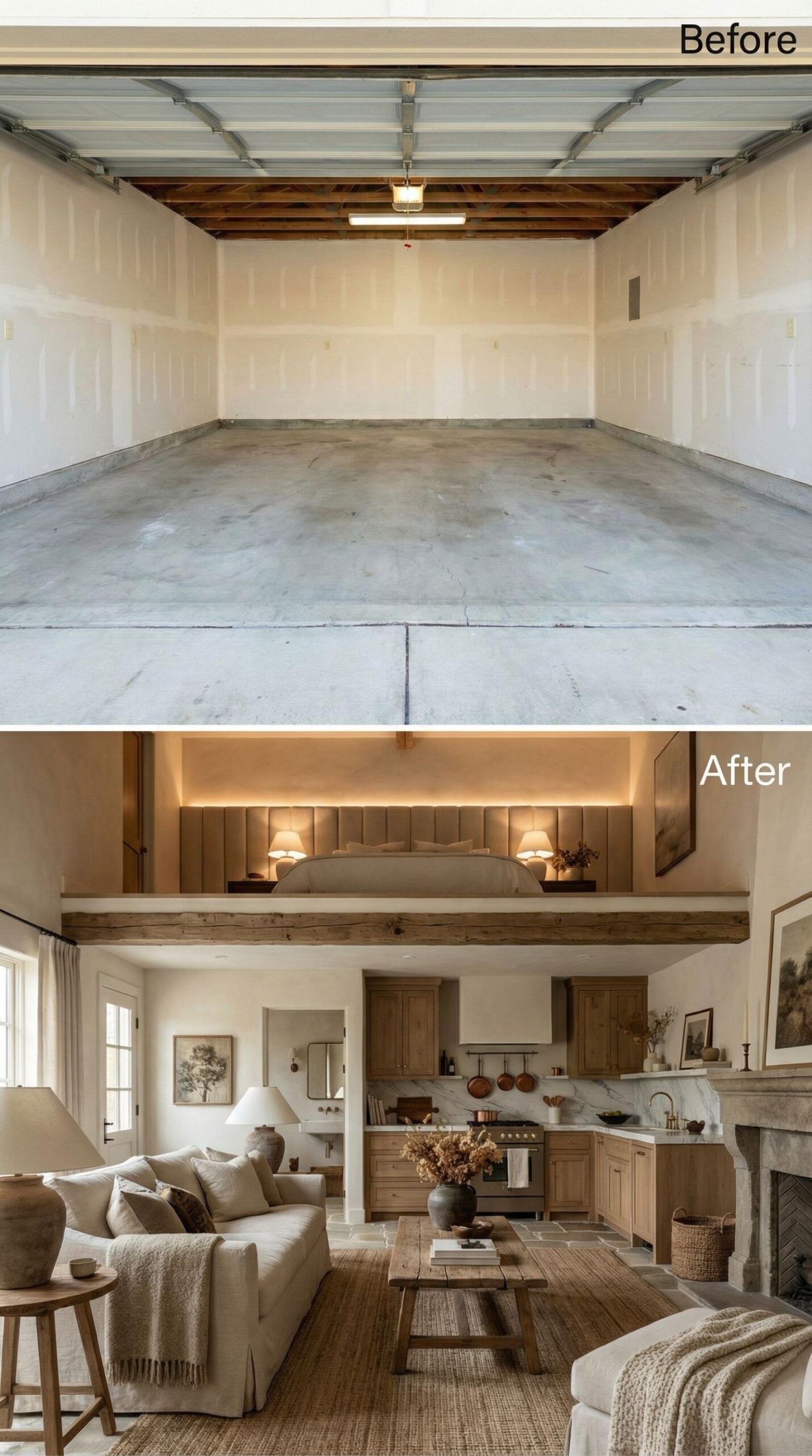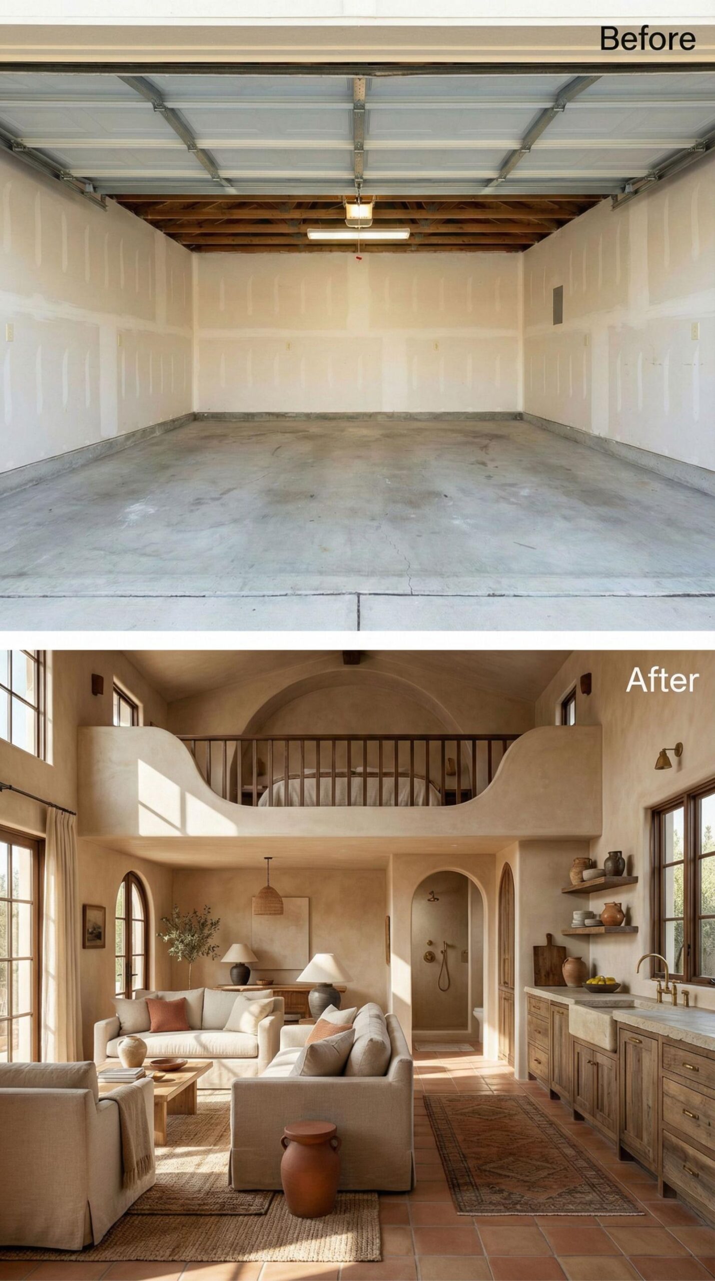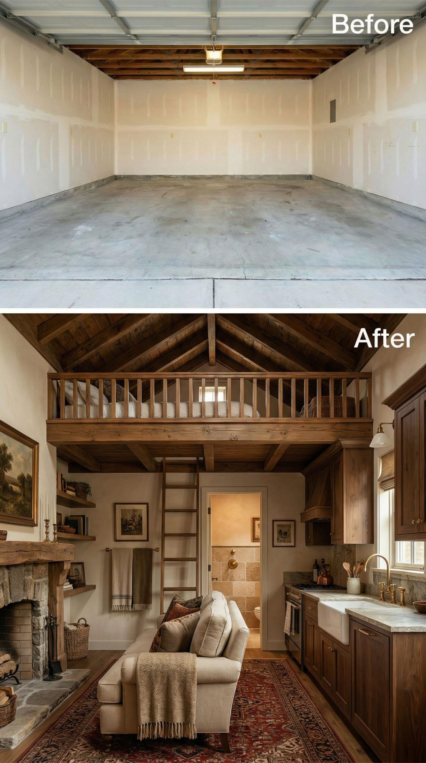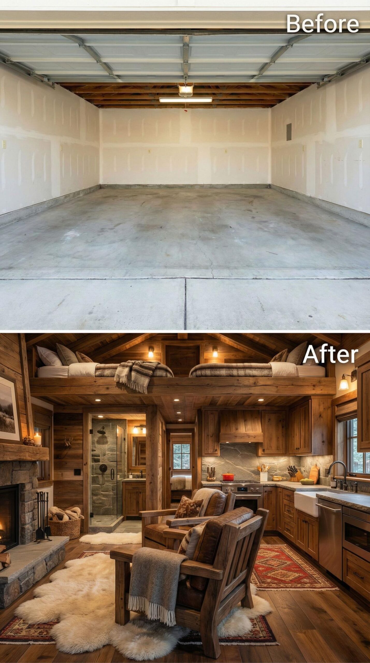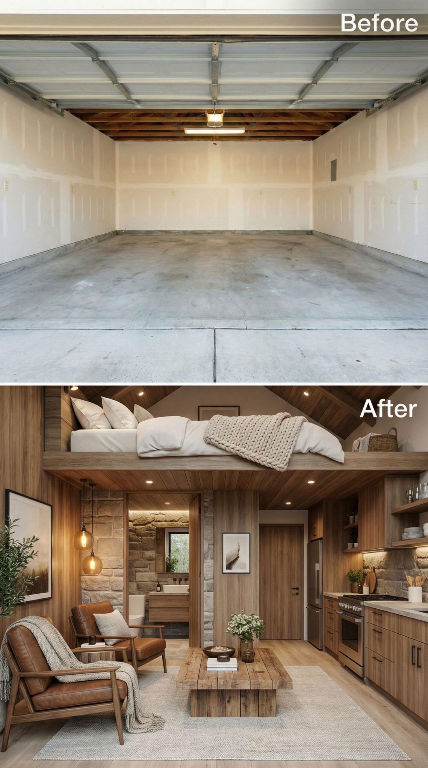 Once the kids moved out, we were left with a two-bay garage we barely used — and no clear idea how to turn it into something better. We liked the idea of converting it into an income-producing apartment, but had no clue how to design the layout, where the kitchen should go, or whether a sleeping loft would even work. So instead of guessing, we turned to AI. These 33 before-and-after garage transformations show what’s possible when the same space is reimagined in dozens of different ways.