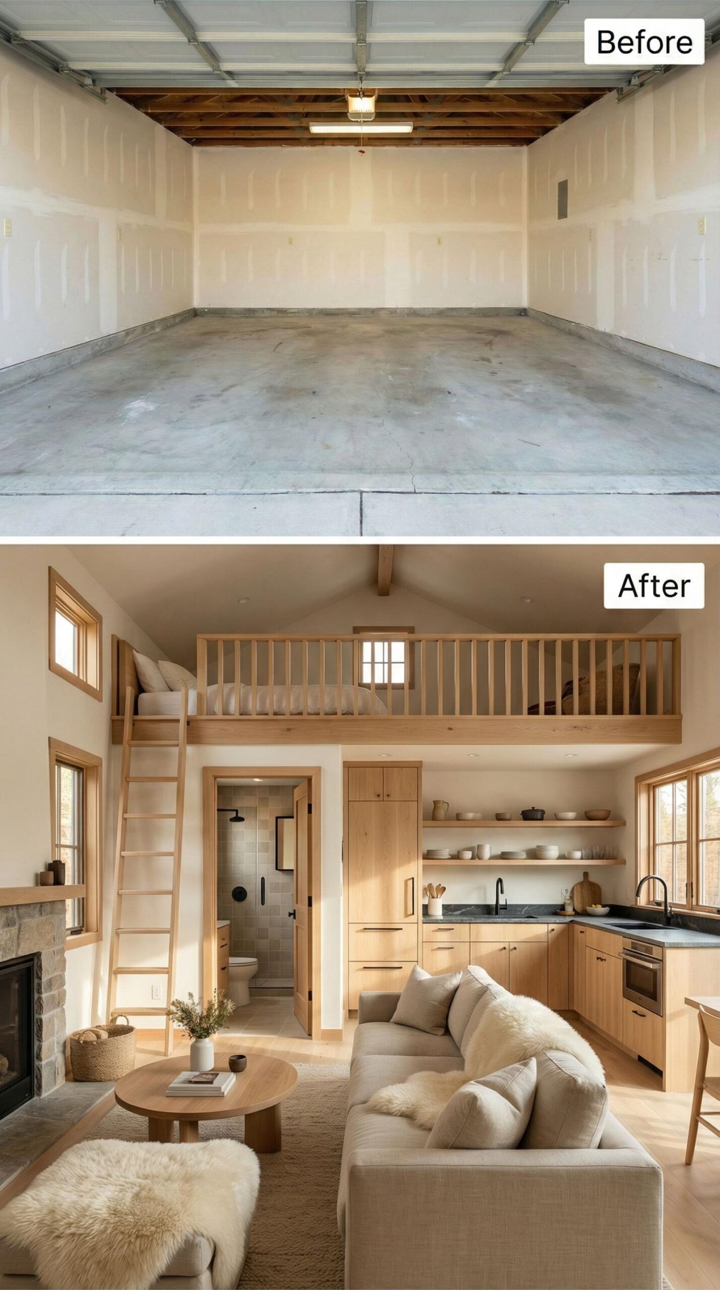 From Two-Bay Garage to Cozy Loft-Style Living Space