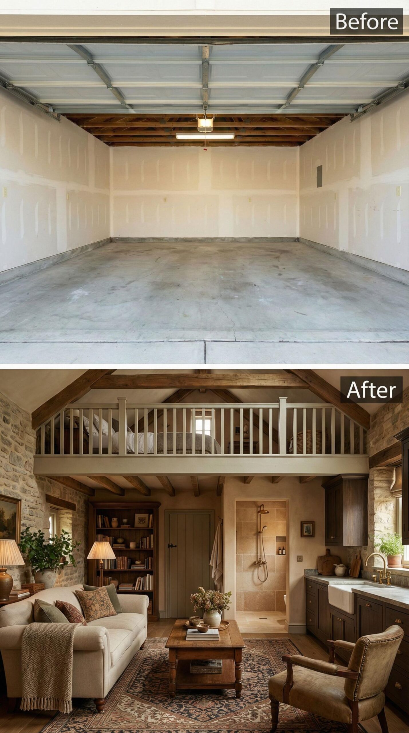 From Two-Bay Garage to Rustic Loft with Exposed Beam Charm