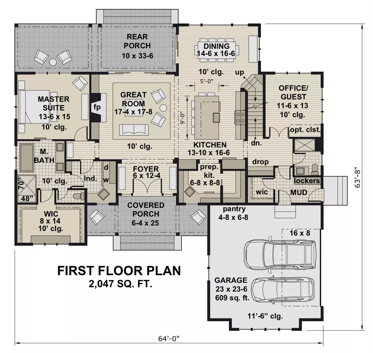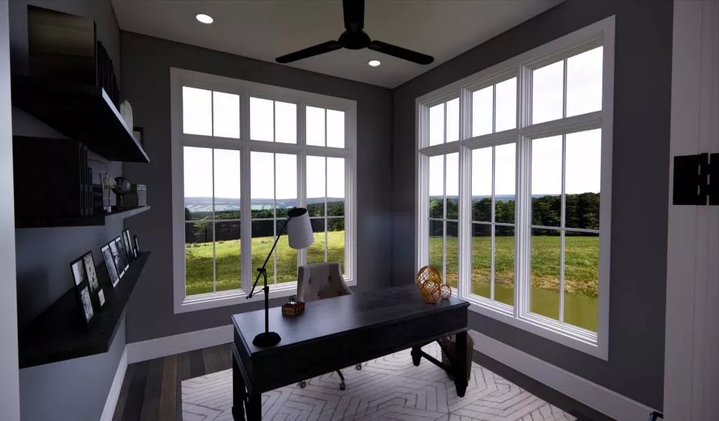 The main level of this 2-story design offers great central spaces, including the great room, island kitchen, and even a dining room that opens onto your covered rear porch. The first floor also provides a guest suite, which can double as an office, as well as the convenient master, complete with a large walk-in closet and a comfortably large bath.