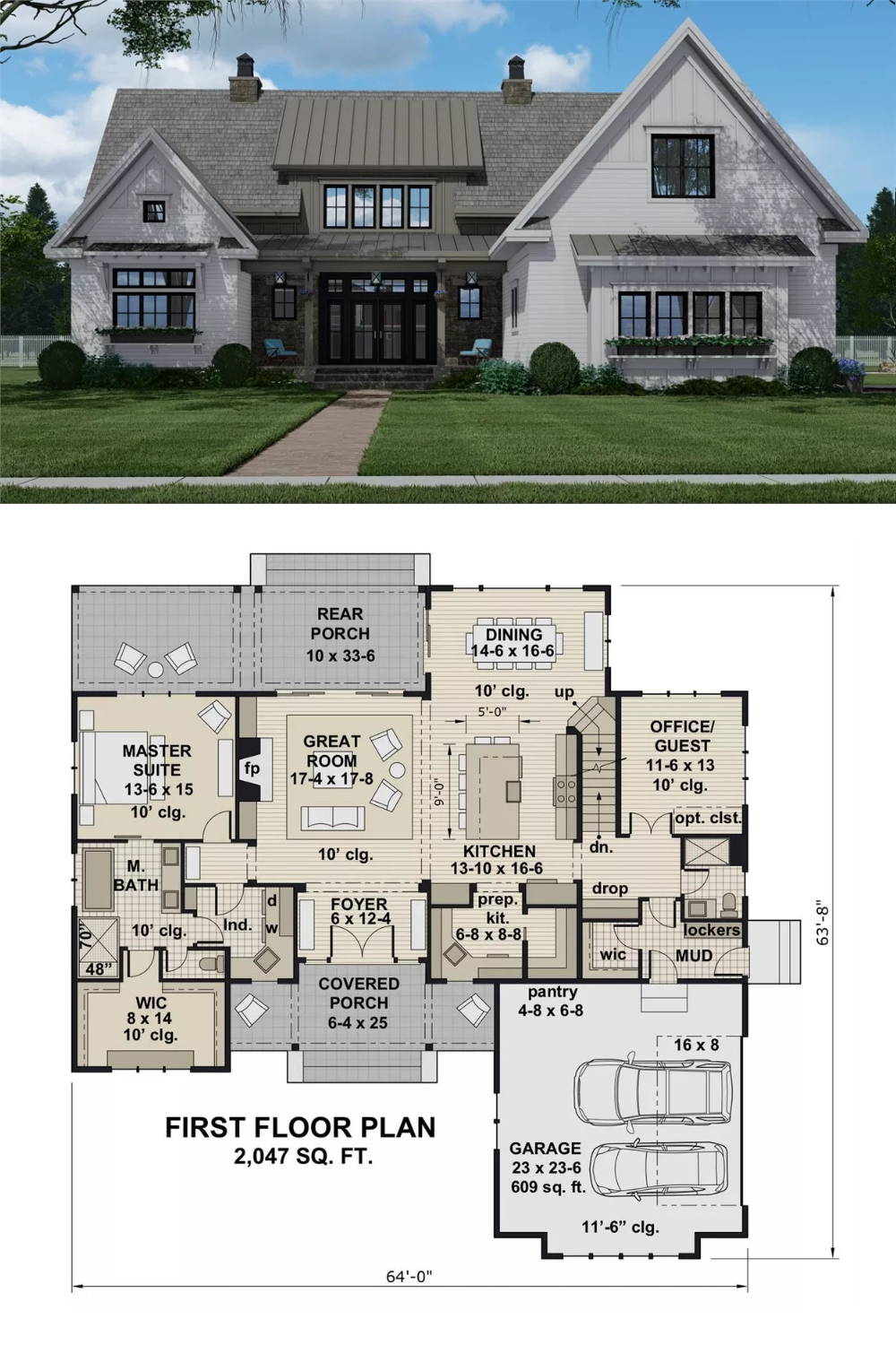 A brilliantly designed front facade is highlighted by a steep roofline and a welcoming covered front porch, accented with tasteful combinations of wood planking and traditional metal roofing. As you step inside, take note of the extremely open, interconnected layout, which is enhanced thanks to tons of natural light flooding in from large windows.
