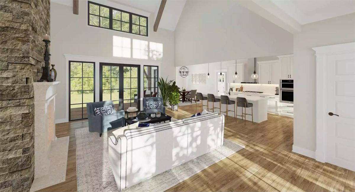Lamborn is a one-story modern farmhouse designed to bring comfort, style, and everyday convenience together in a thoughtful layout. The family room showcases beautiful vaulted ceilings that enhance the open feel and create a warm gathering space.