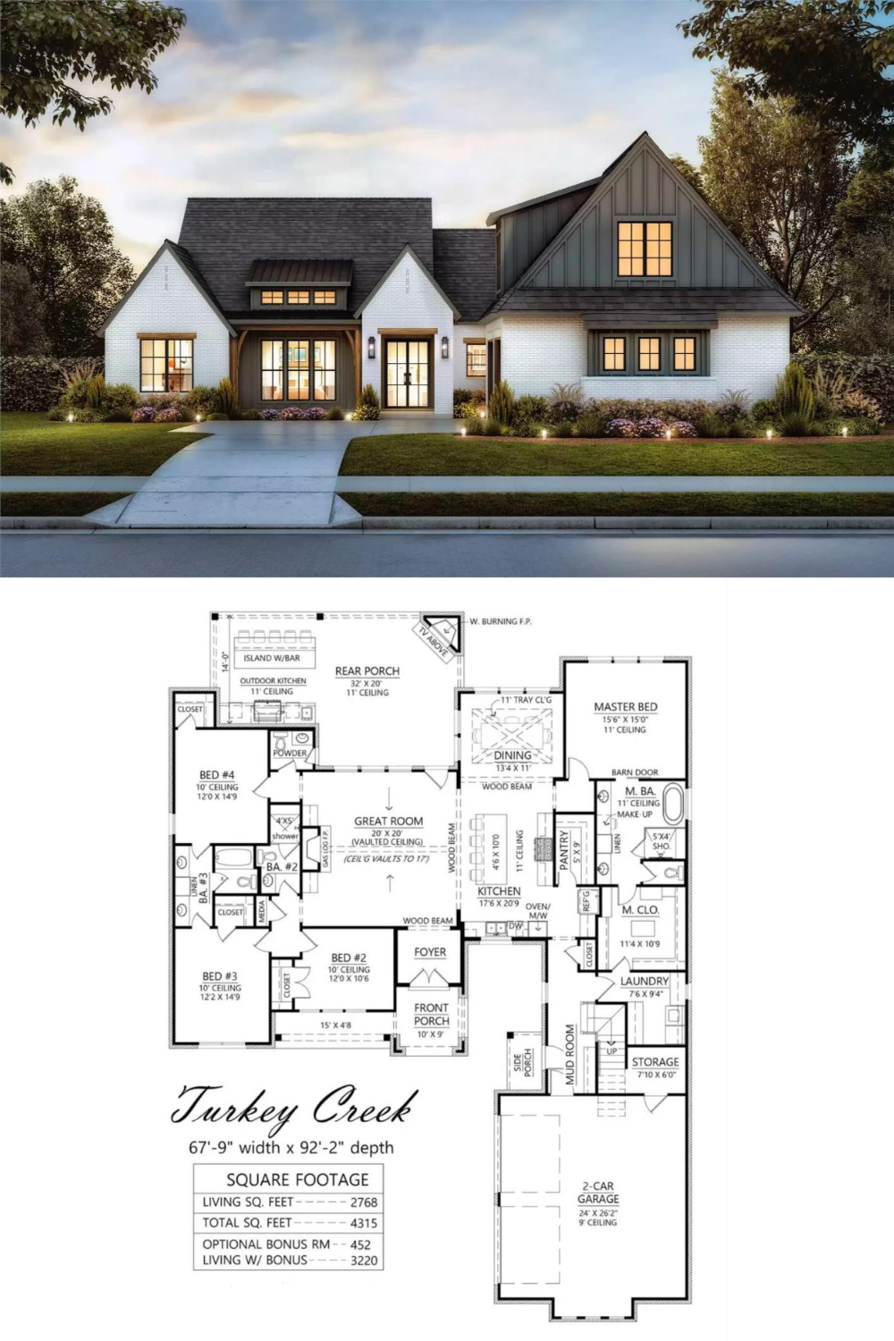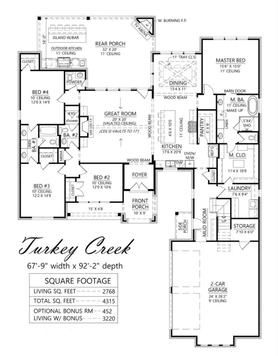 This house plan has 2,768 square feet of well-planned living space and is thoughtfully designed to meet the needs of most families. It has four spacious bedrooms tucked away opposite the primary bedroom for privacy.