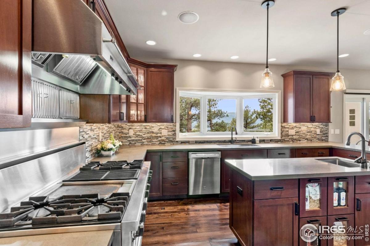 Meticulously crafted in 1995 by a local custom builder for his own family and recently updated with an interior designer, the home impresses with high ceilings, wide-plank hand-hewn hickory floors, custom millwork by Aspen Leaf Kitchens & top quality finishes. Stunning custom etched glass and wrought-iron entry doors open to a soaring two-story entry. Walls of windows on every level frame nature’s sunrise-to-sunset work-of-art views. Chefs will love the open gourmet kitchen featuring custom cabinetry and Sub-Zero, Viking & Bosch appliances.