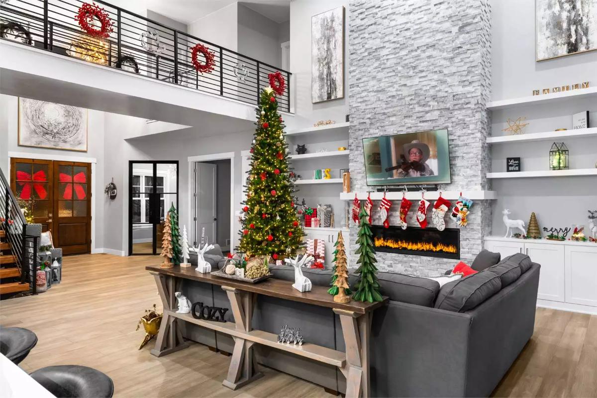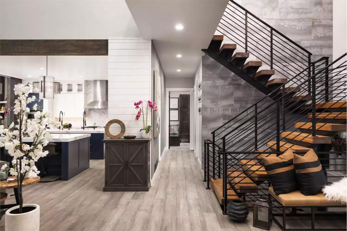 This 4,493 square foot home offers a warm and spacious layout designed for comfortable family living. The main level includes an open floor plan that blends the great room, dining area, and a well-planned L-shaped kitchen with a generous island and butlerโs pantry.