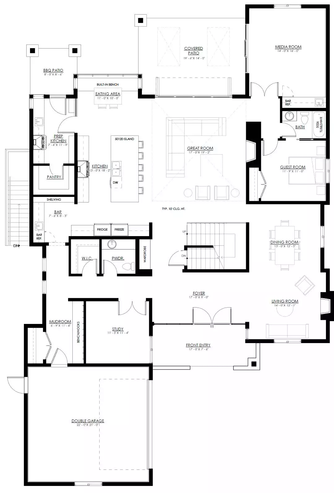 The open-concept main floor includes a spacious great room, dining area, and a chef-inspired kitchen with a large island and walk-in pantry, perfect for both everyday living and entertaining.