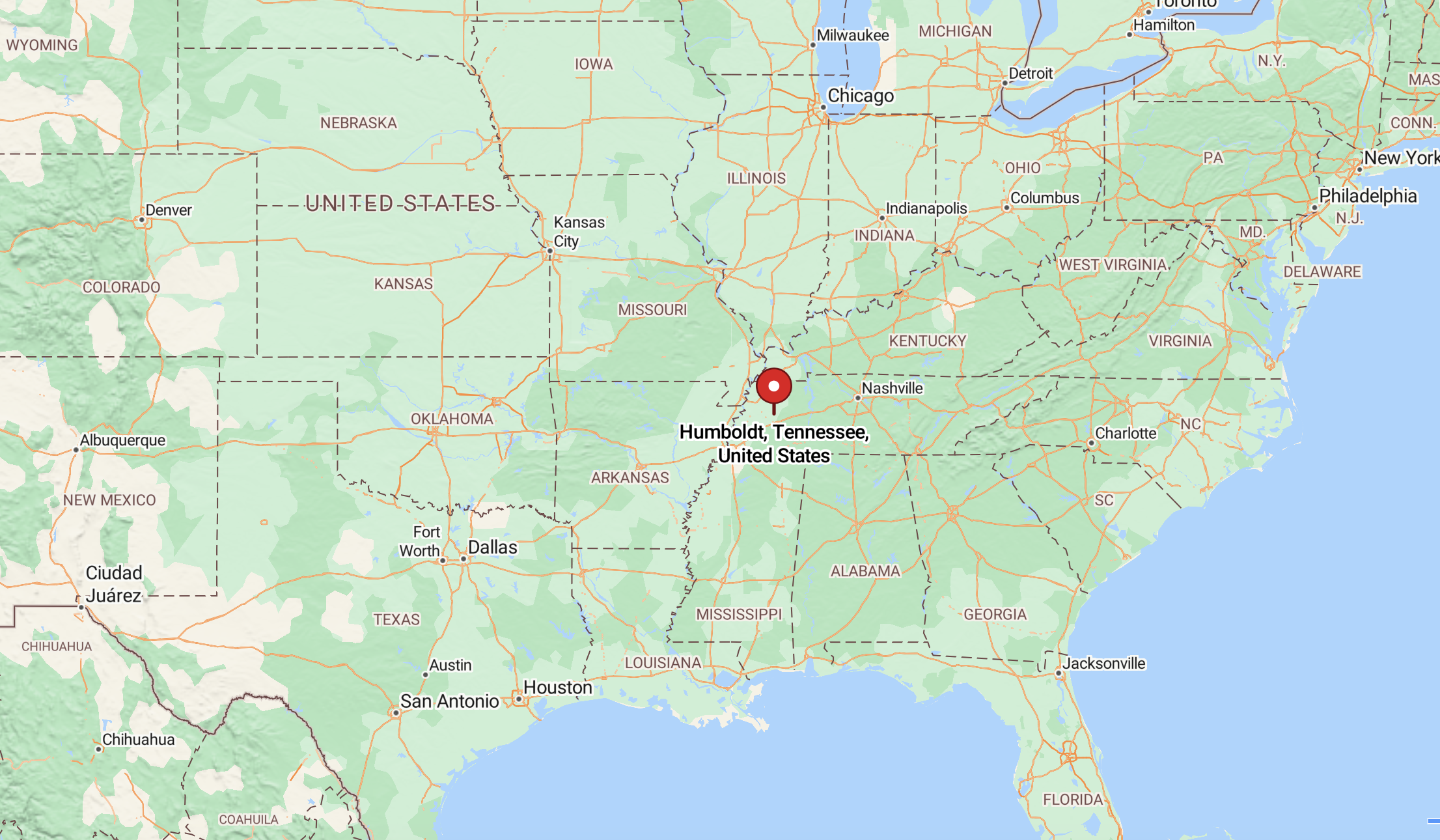 Humboldt, Tennessee, is located in Gibson County in the western part of the state. It lies about 20 kilometers north of Jackson, providing easy access to urban amenities. The town is approximately 150 kilometers from Memphis, making it a convenient stop for travelers heading to or from major cities in Tennessee. Humboldt is well-connected by highways, offering accessibility to surrounding regions, including parts of Arkansas.