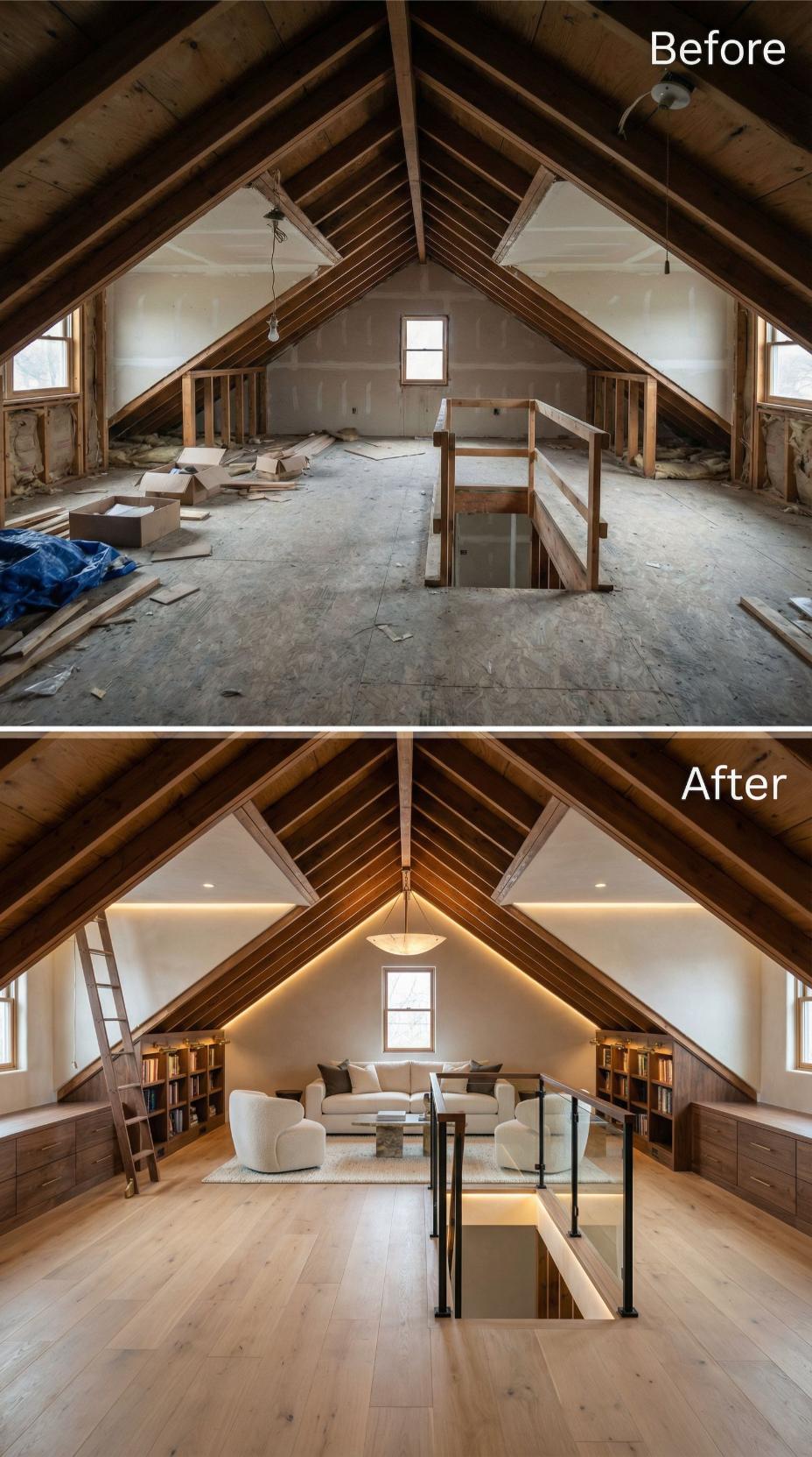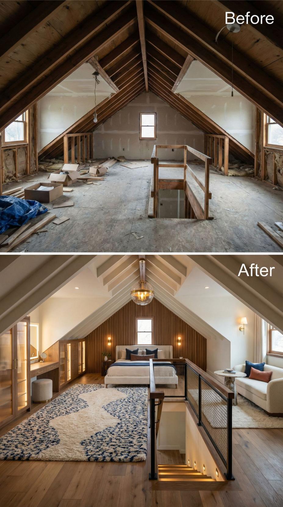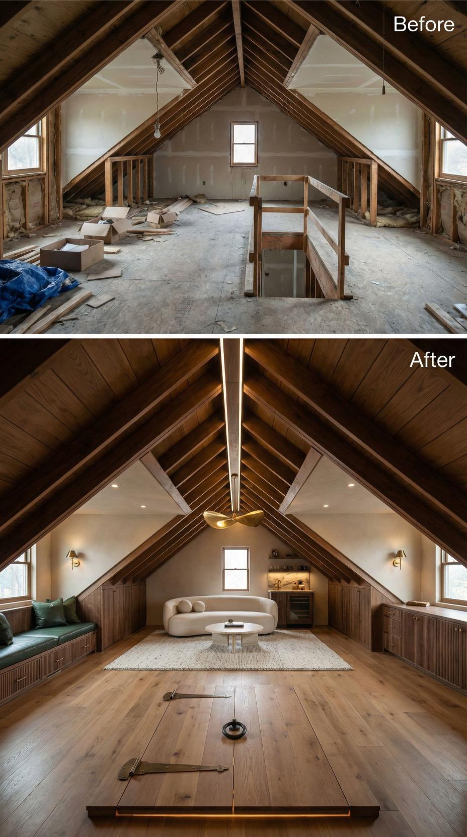 From Builder Grade Attic to Sophisticated Loft Living Space