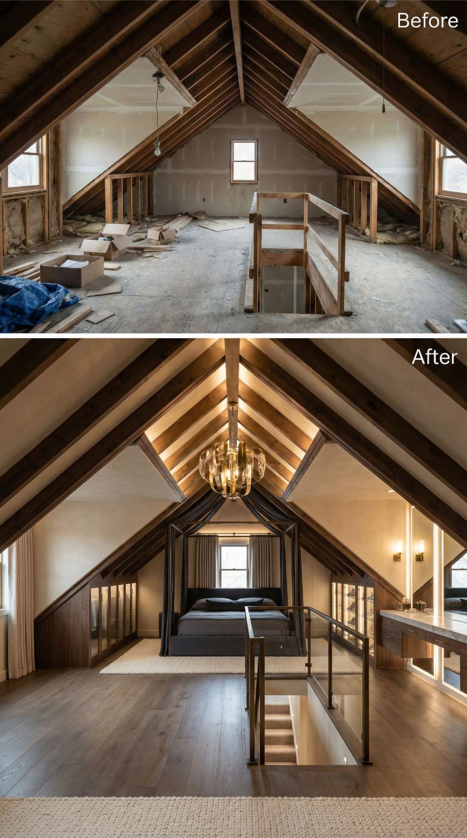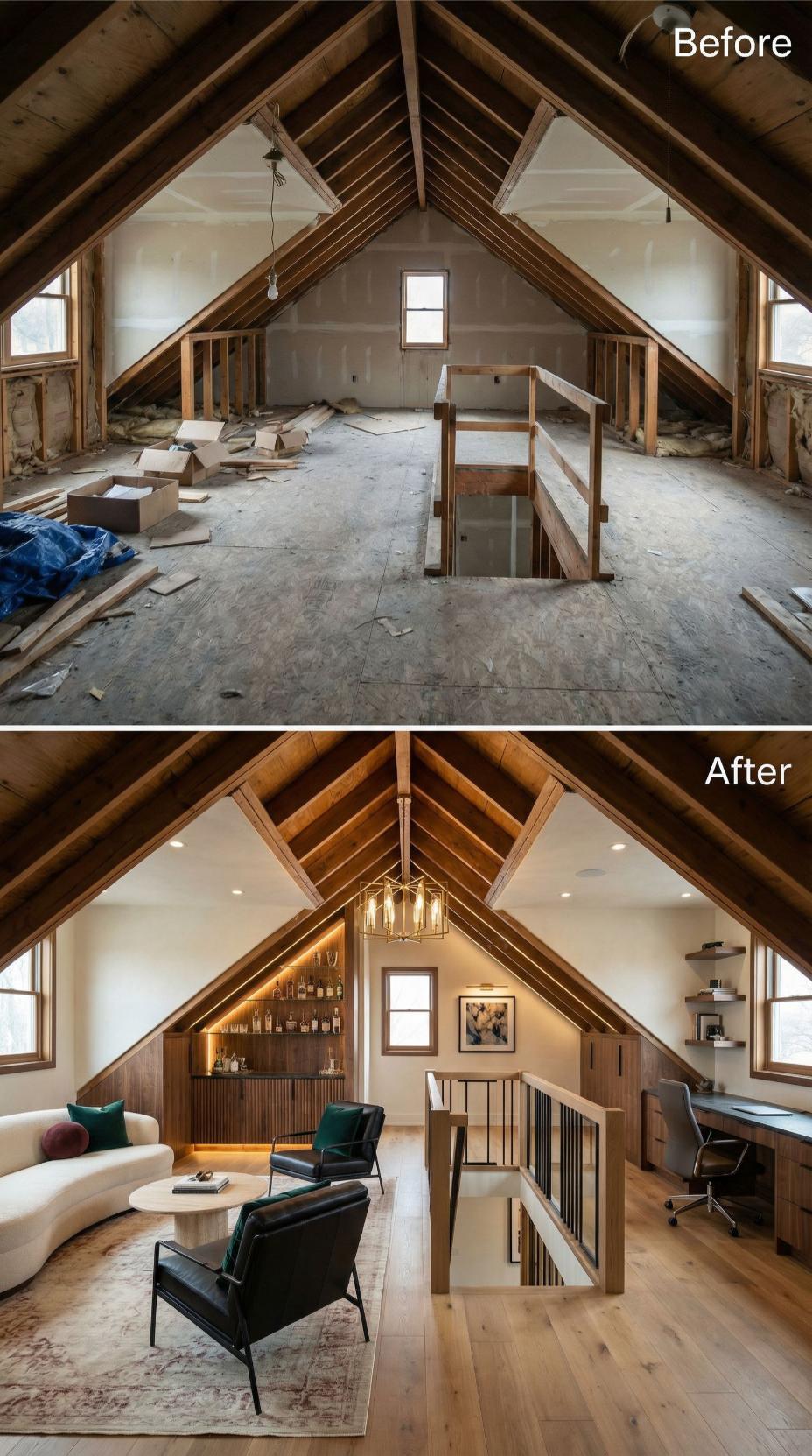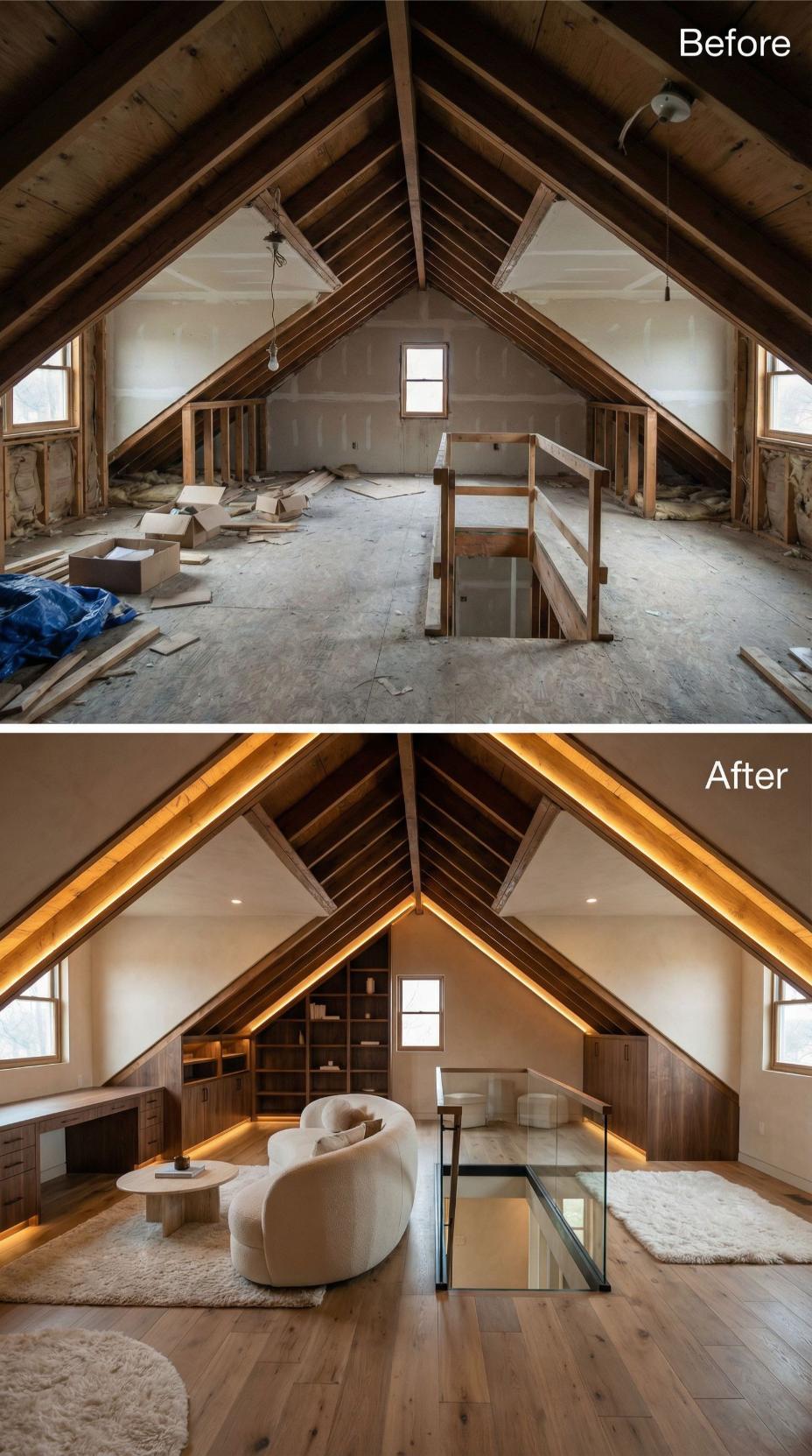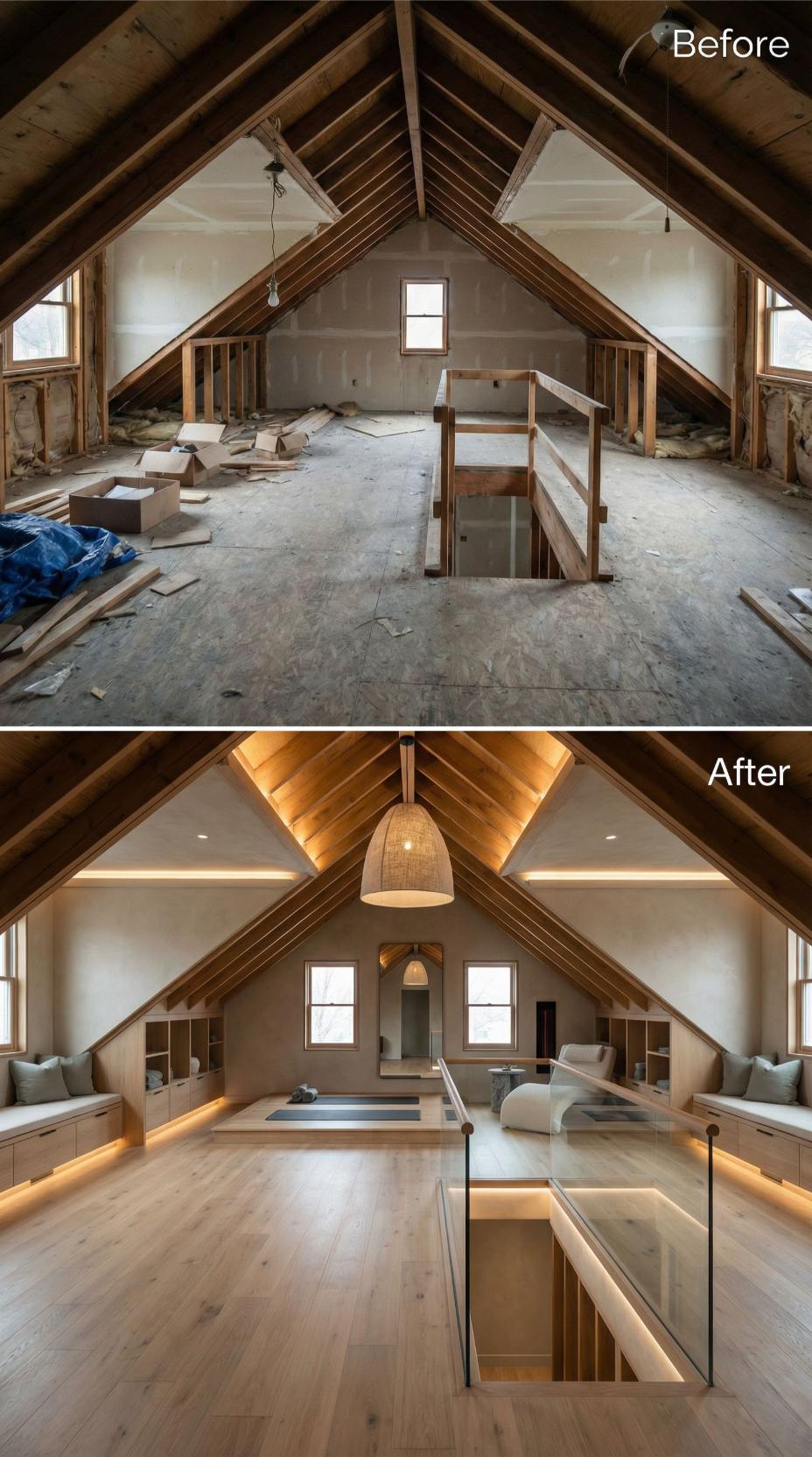 From Builder Grade Attic to Sophisticated Loft Living Space