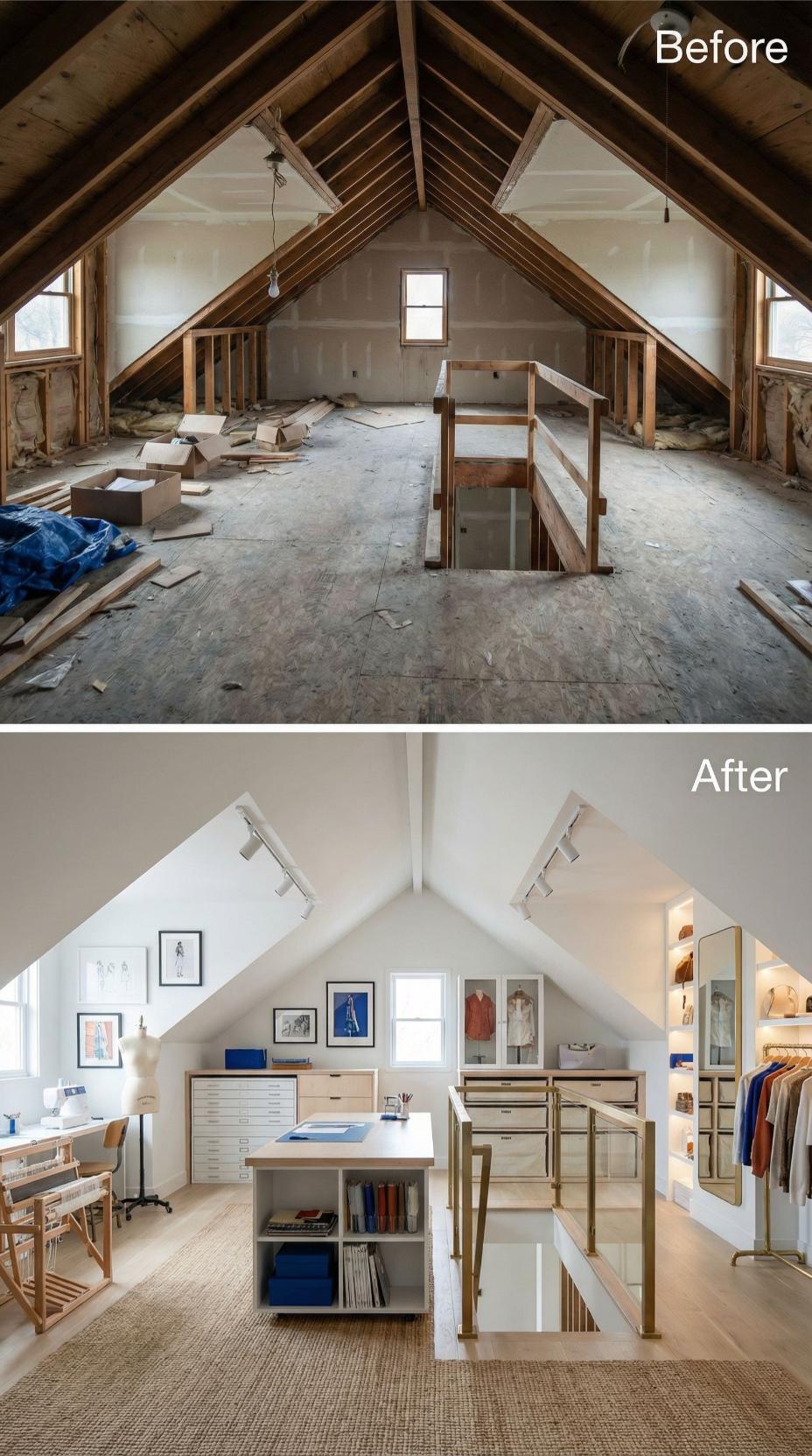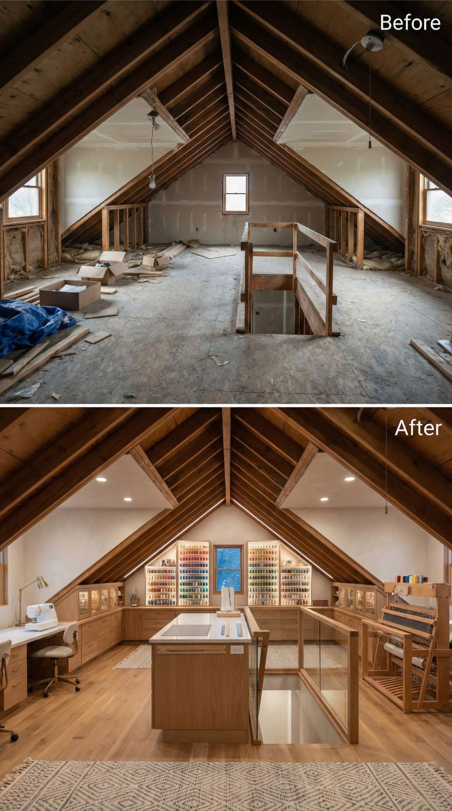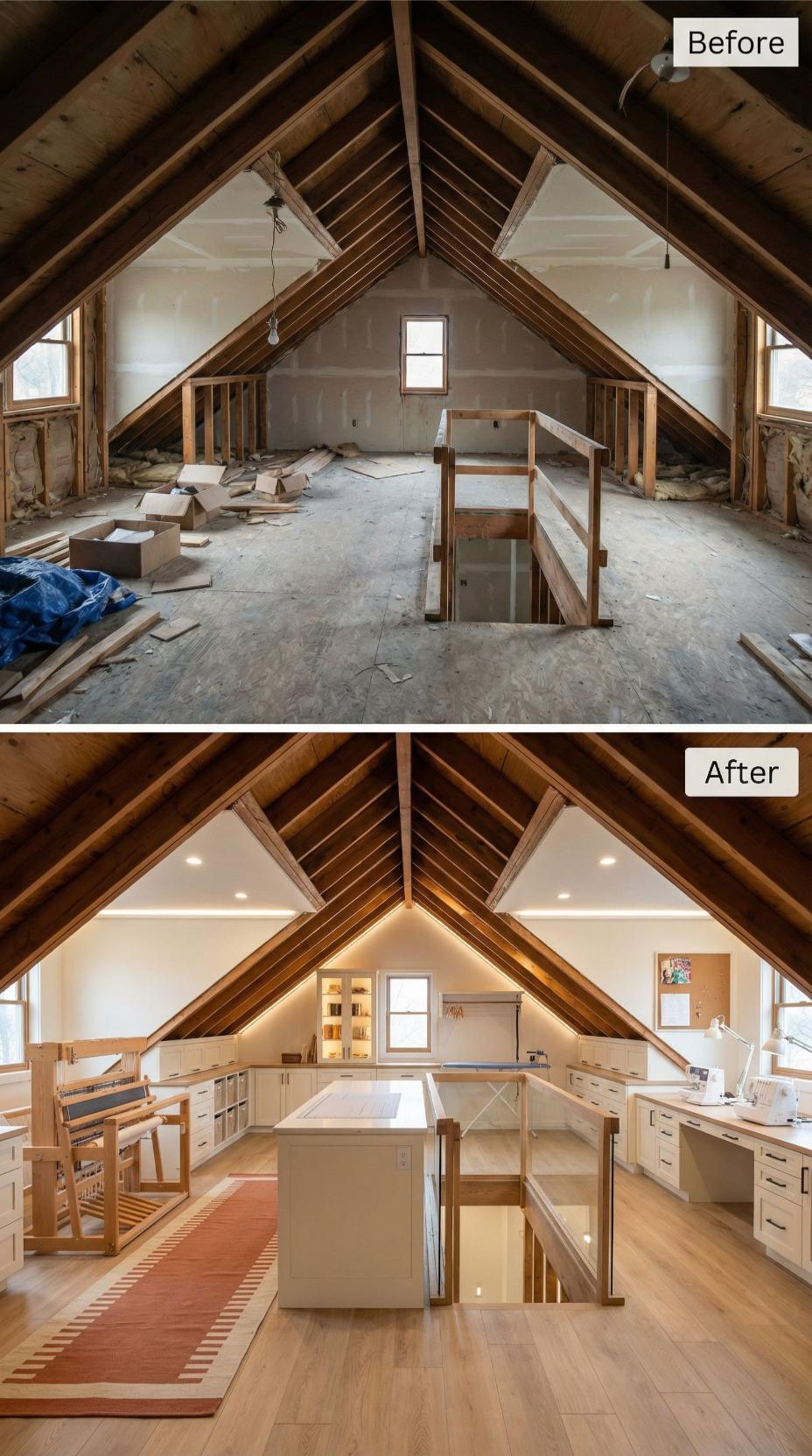 From Builder Grade Attic to Designer Craft Studio Paradise