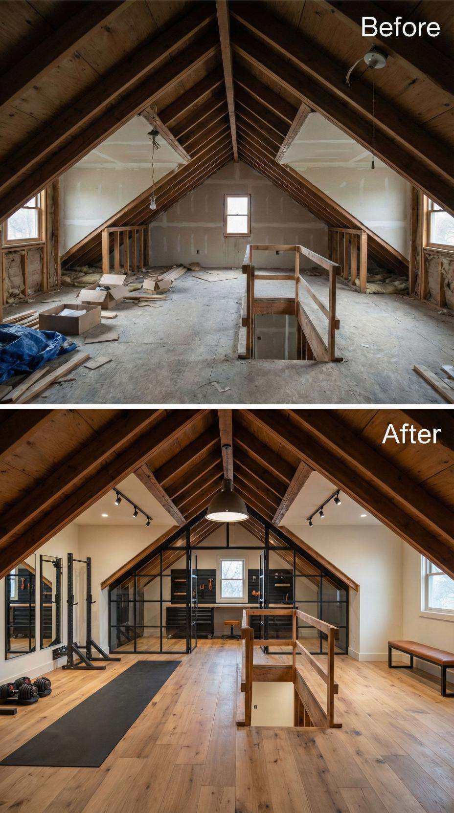 From Unused Builder Grade Attic to Industrial-Chic Home Gym Haven