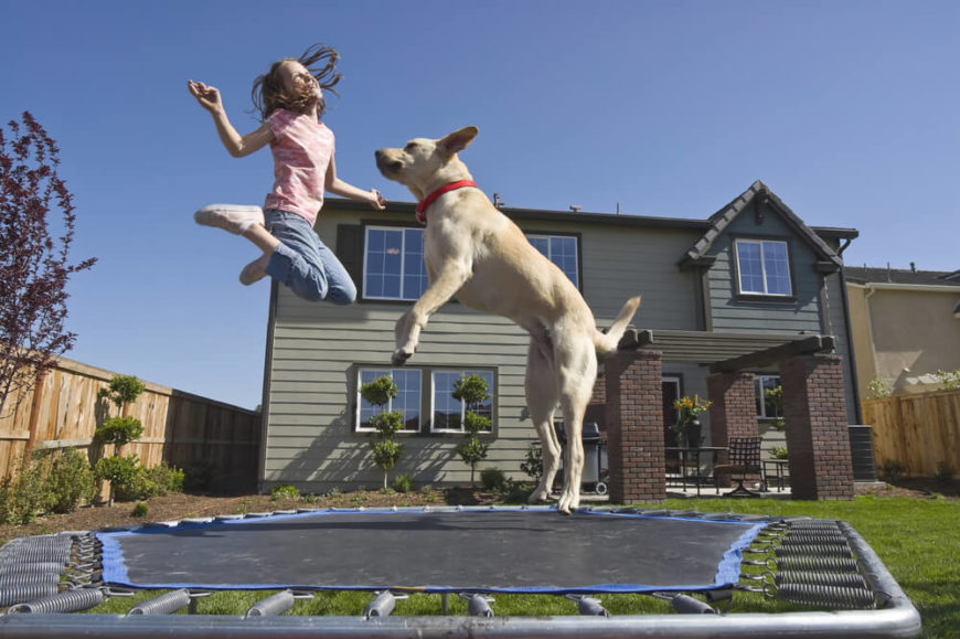 The trampoline here is a bit closer to the ground. Trampolines with a lower profile such as this one are great for younger children. You can be more at ease with this kind of model as being lower to the ground reduces the chance of injury. Source: Zillow Digsโข