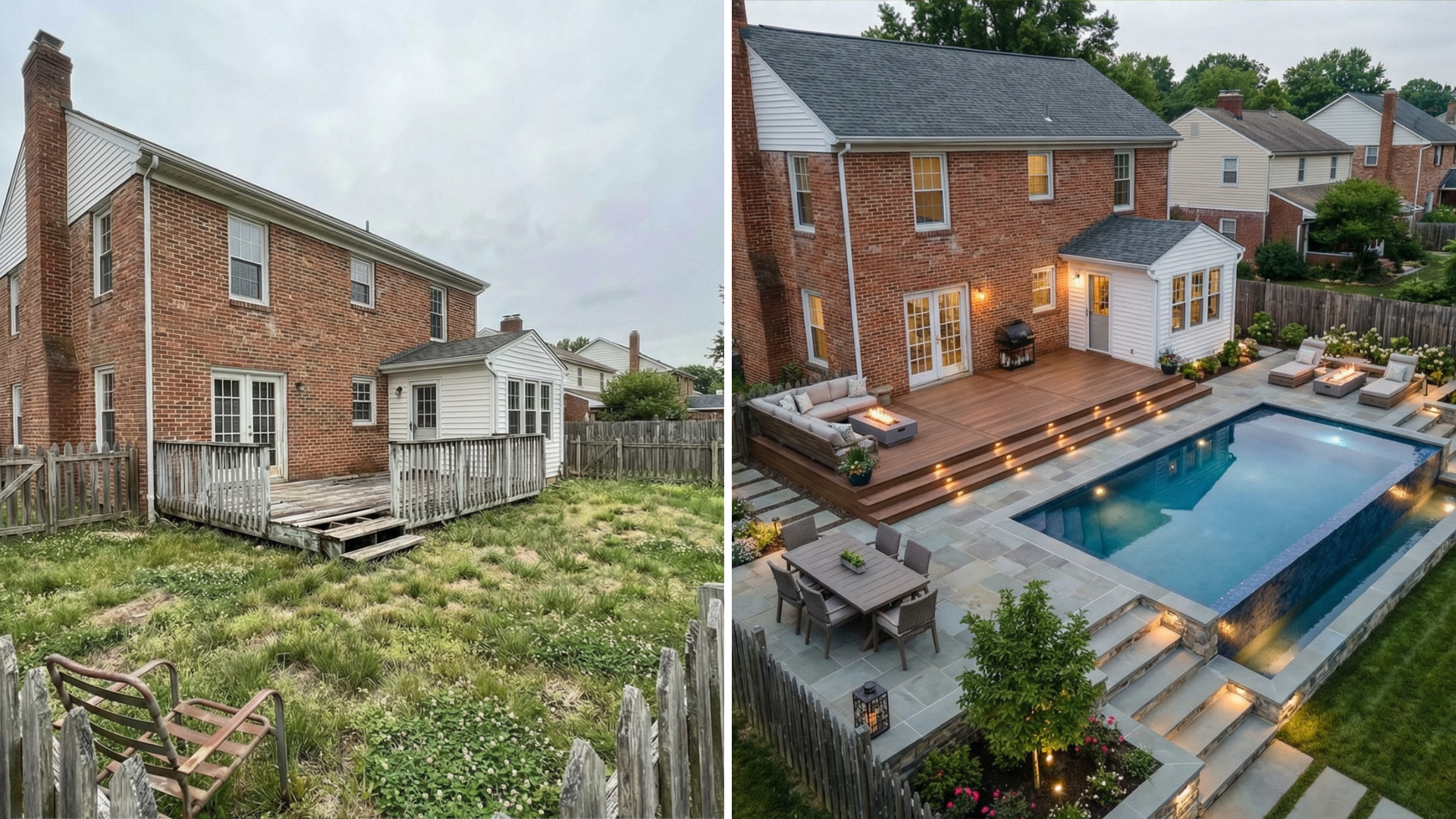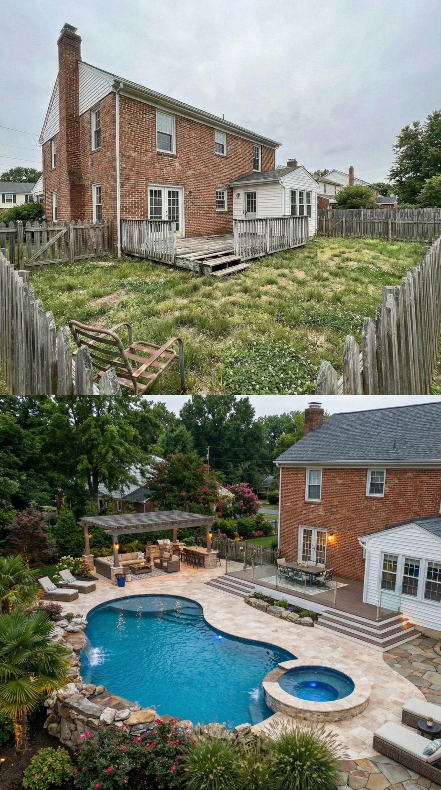 Some backyards don’t need a little cleanup — they need a complete rethink. The space you’re looking at started as a plain, neglected yard, the kind most homeowners quietly ignore. So instead of guessing, we asked AI to redesign it from the ground up. The result? 19 dramatically different before-and-after backyard transformations, ranging from lush garden retreats to multi-tier decks and resort-level outdoor living spaces. These makeovers show just how much potential a single backyard can hide.
