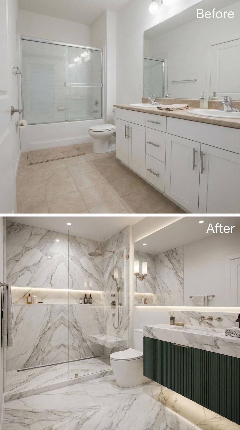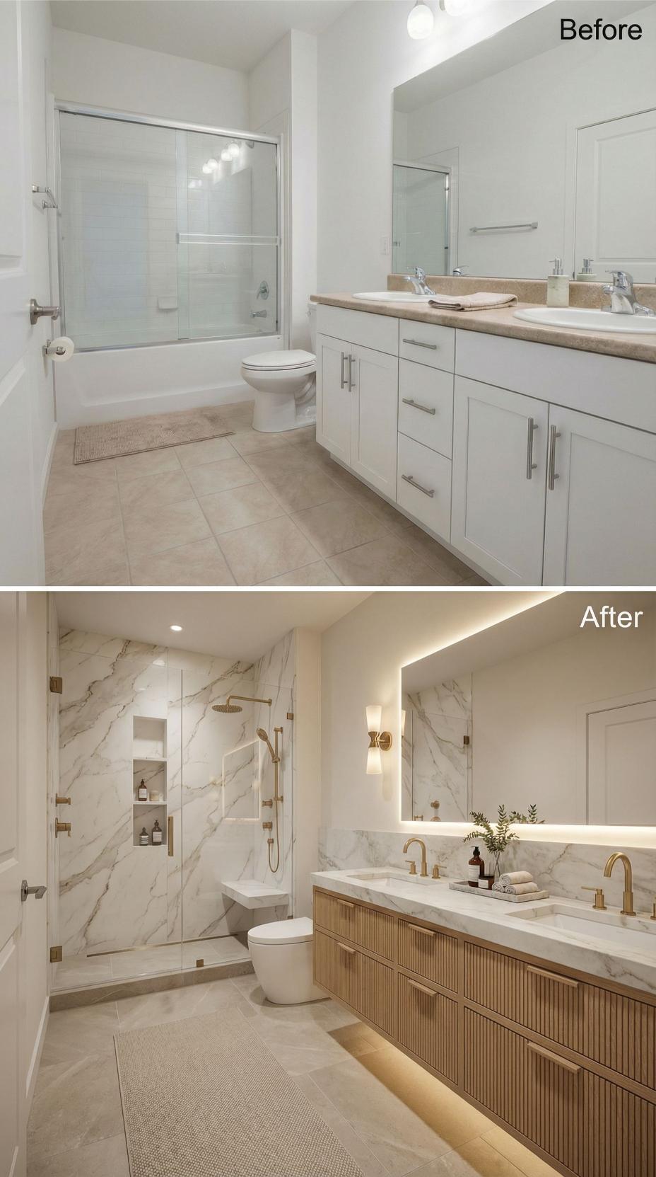 From Builder Grade Basics to Spa-Inspired Marble Luxury