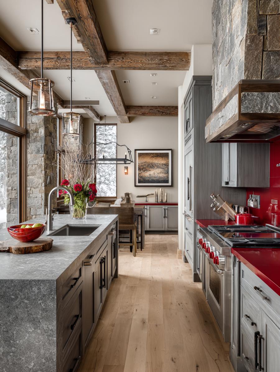Rustic New American Luxury Galley Kitchen with Clean Symmetry