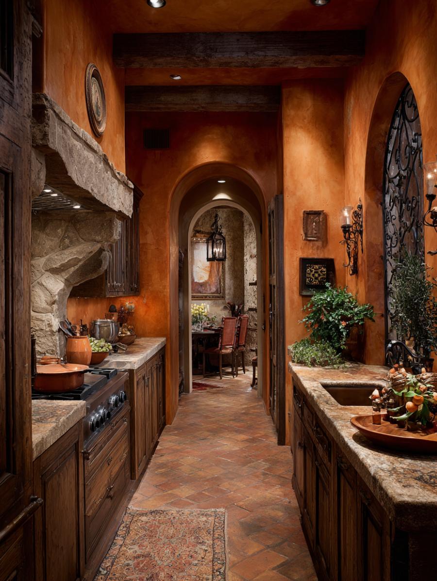 Rustic Tuscan Wall-Galley Kitchen with Terracotta Warmth