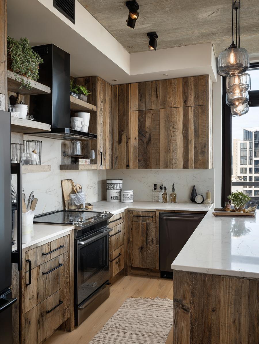 Small Apartment Rustic Luxury Kitchen with Reclaimed Wood Accents