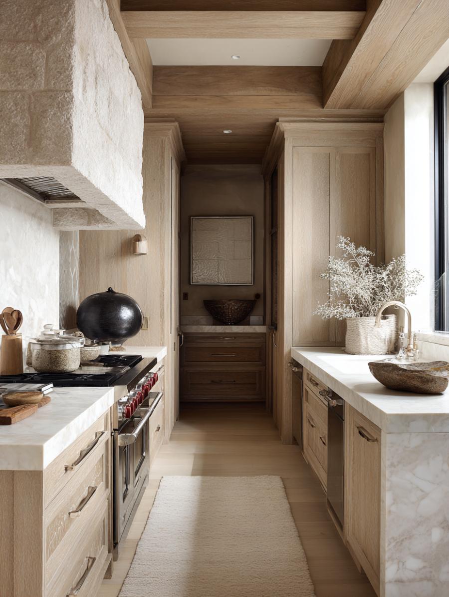 Desert Rustic Luxury Galley Kitchen with Sandstone Tones and Modern Detailing
