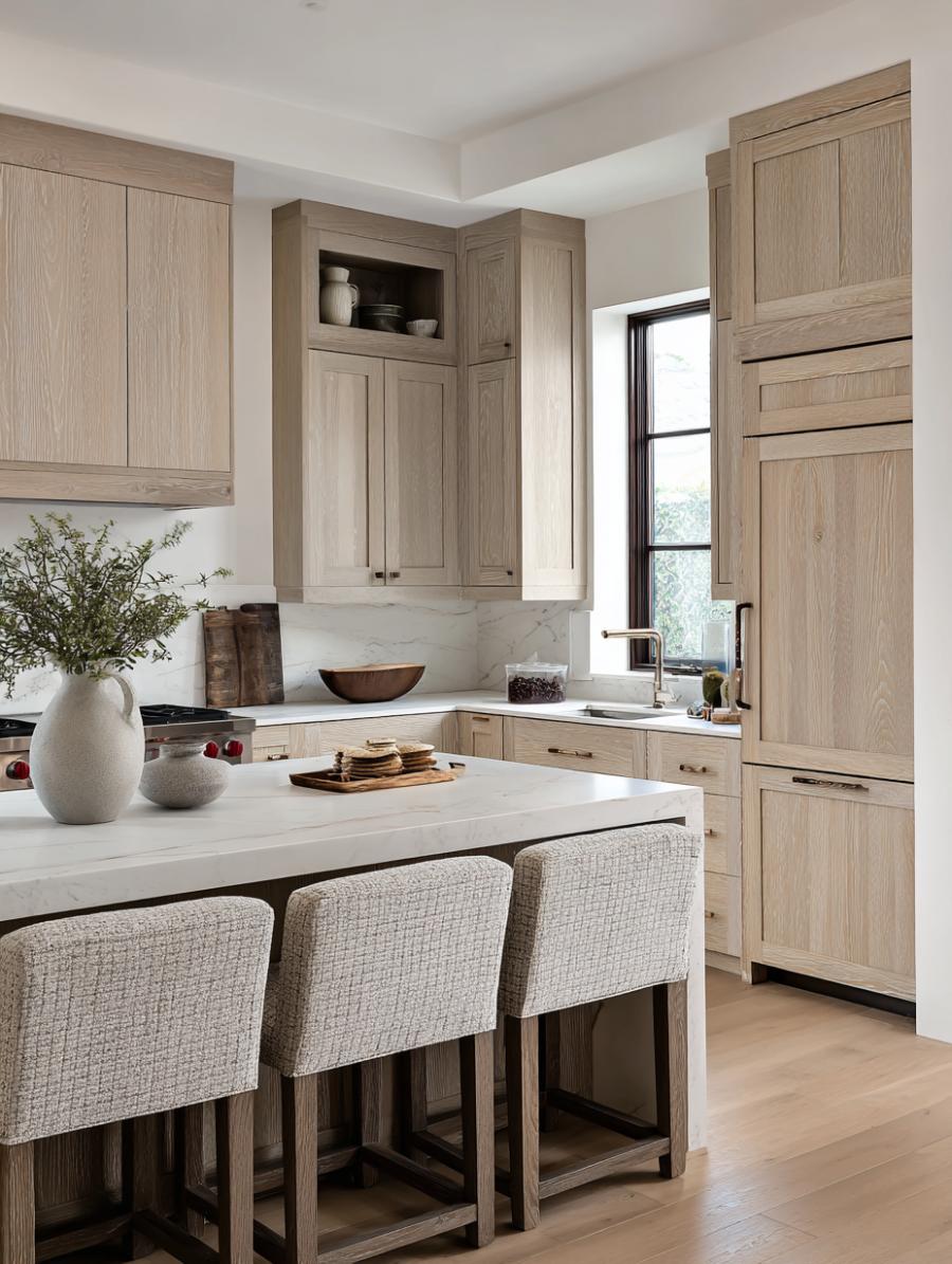 Upscale Rustic Wall-Galley Kitchen with Light Wood and Soft Neutrals