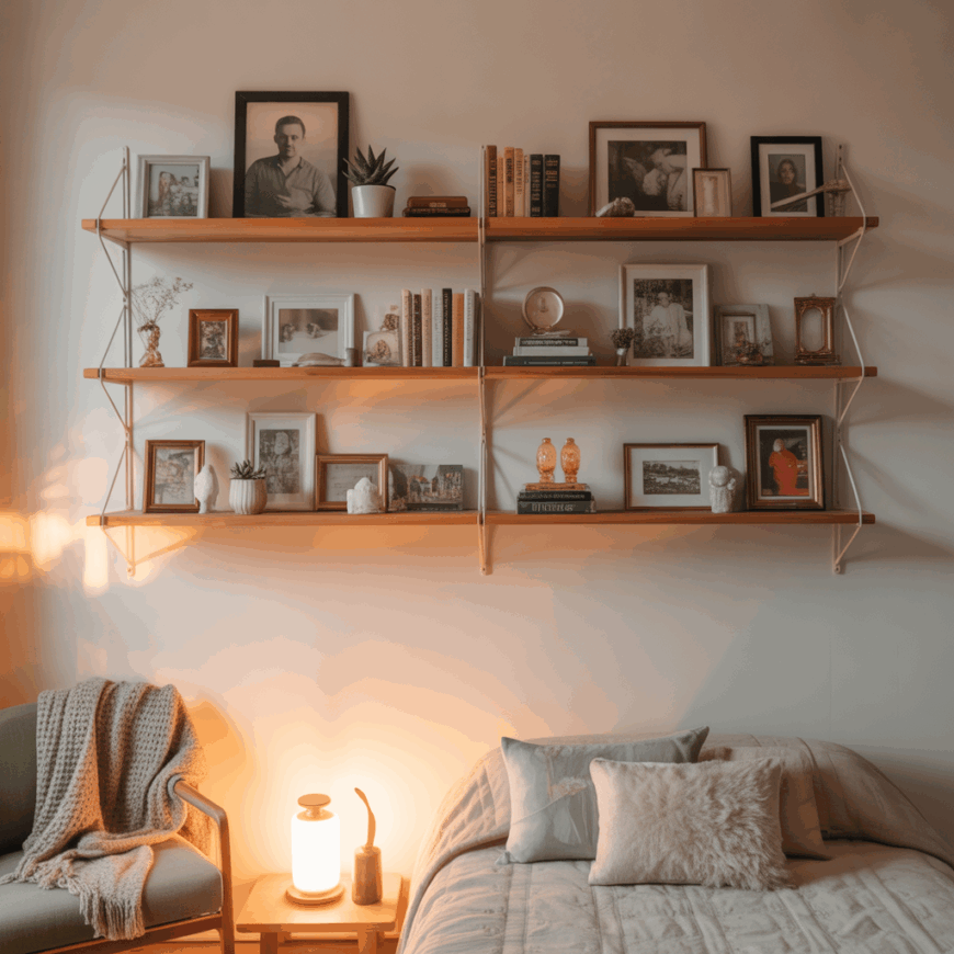 Floating shelves with personal memorabilia create intimate displays that reveal the depth of your connection. When you showcase shared memories together, it signals a relationship built on meaningful experiences.