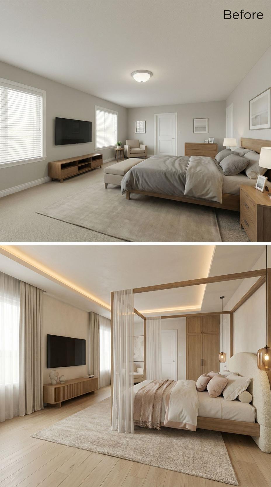 From Builder Grade Bedroom to Luxurious Canopy Suite