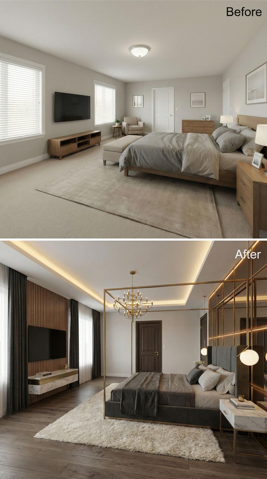 From Builder Grade Bedroom to Luxurious Modern Sanctuary