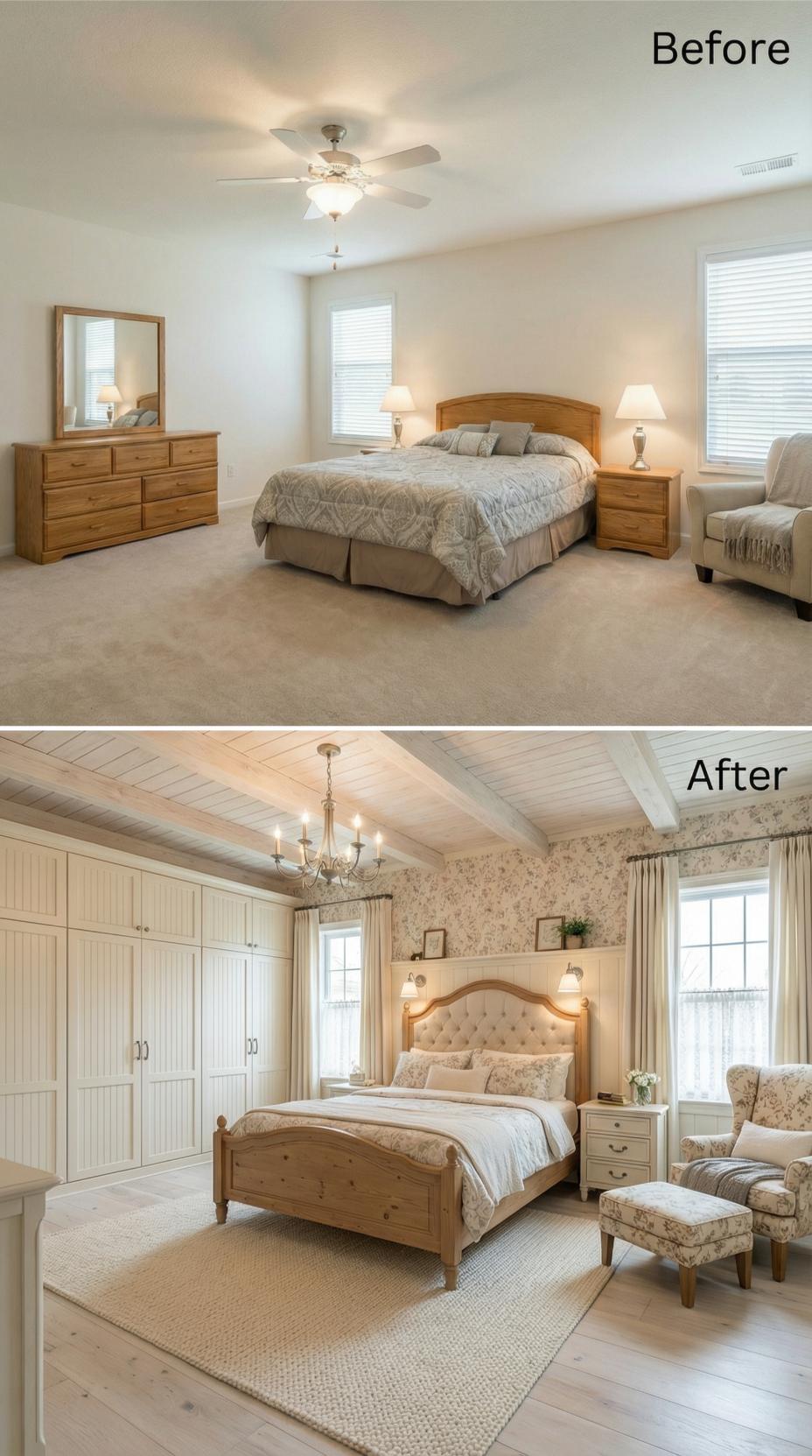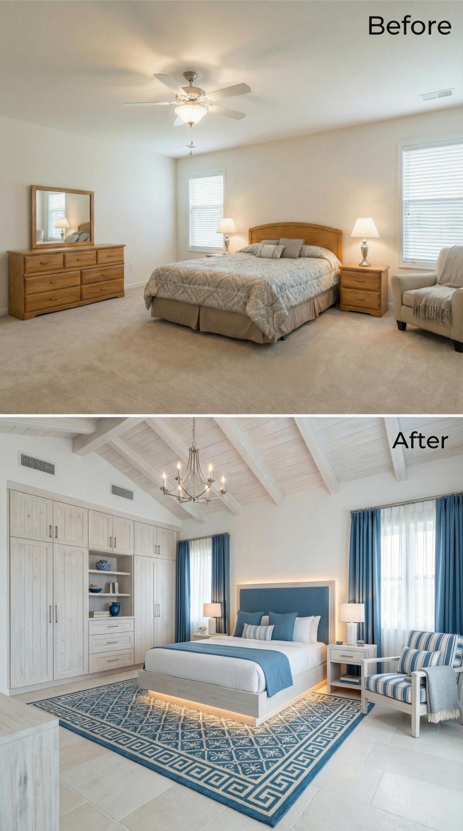 Coastal Serenity Transforms Basic Builder-Grade Bedroom Chaos