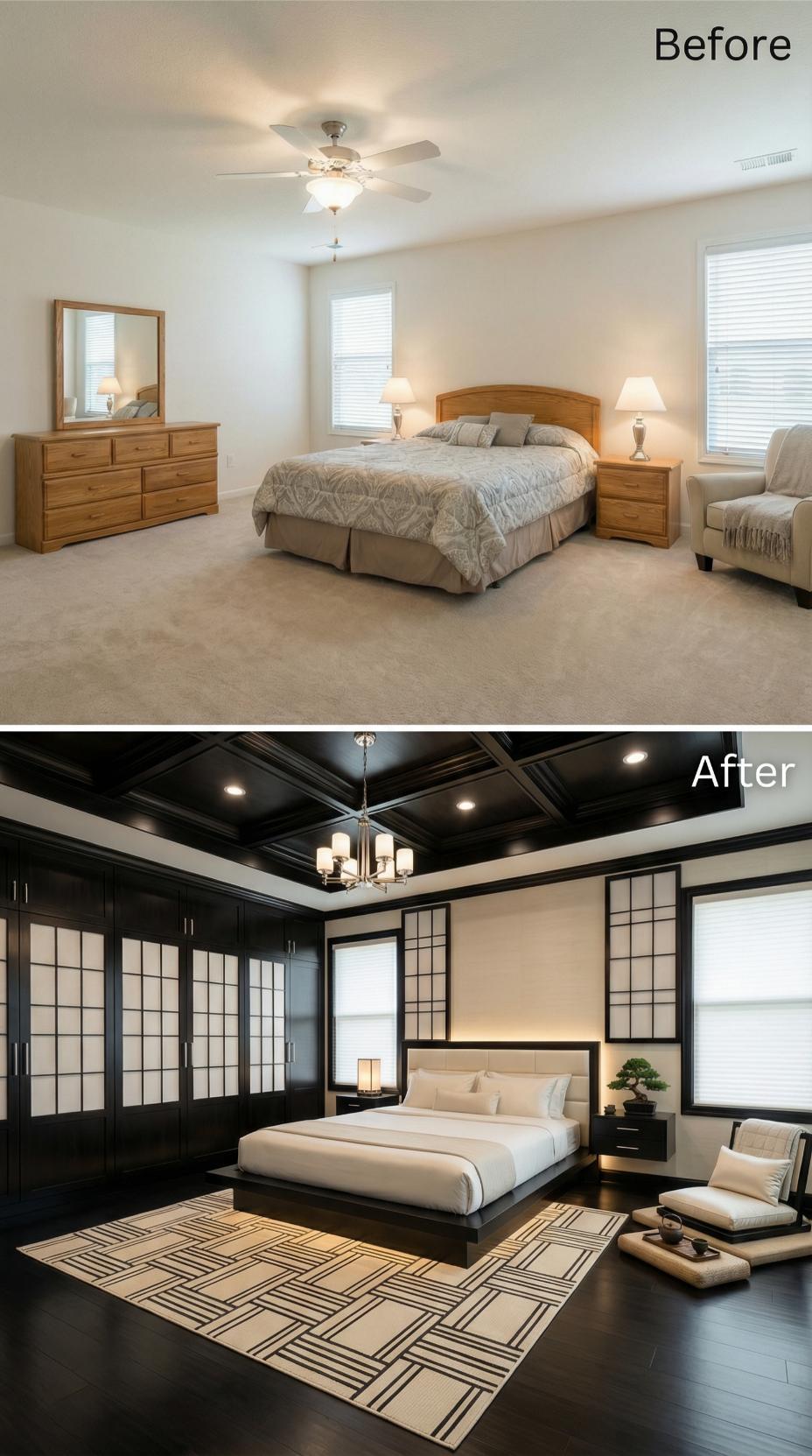 From Standard Builder-Grade to Zen-Inspired Sanctuary with Floating Bed