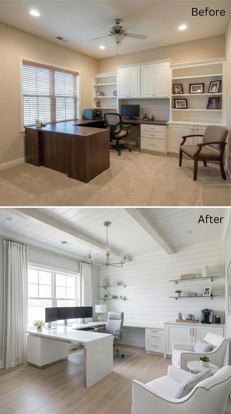 From Cramped Builder-Grade to Sophisticated Shiplap Executive Suite