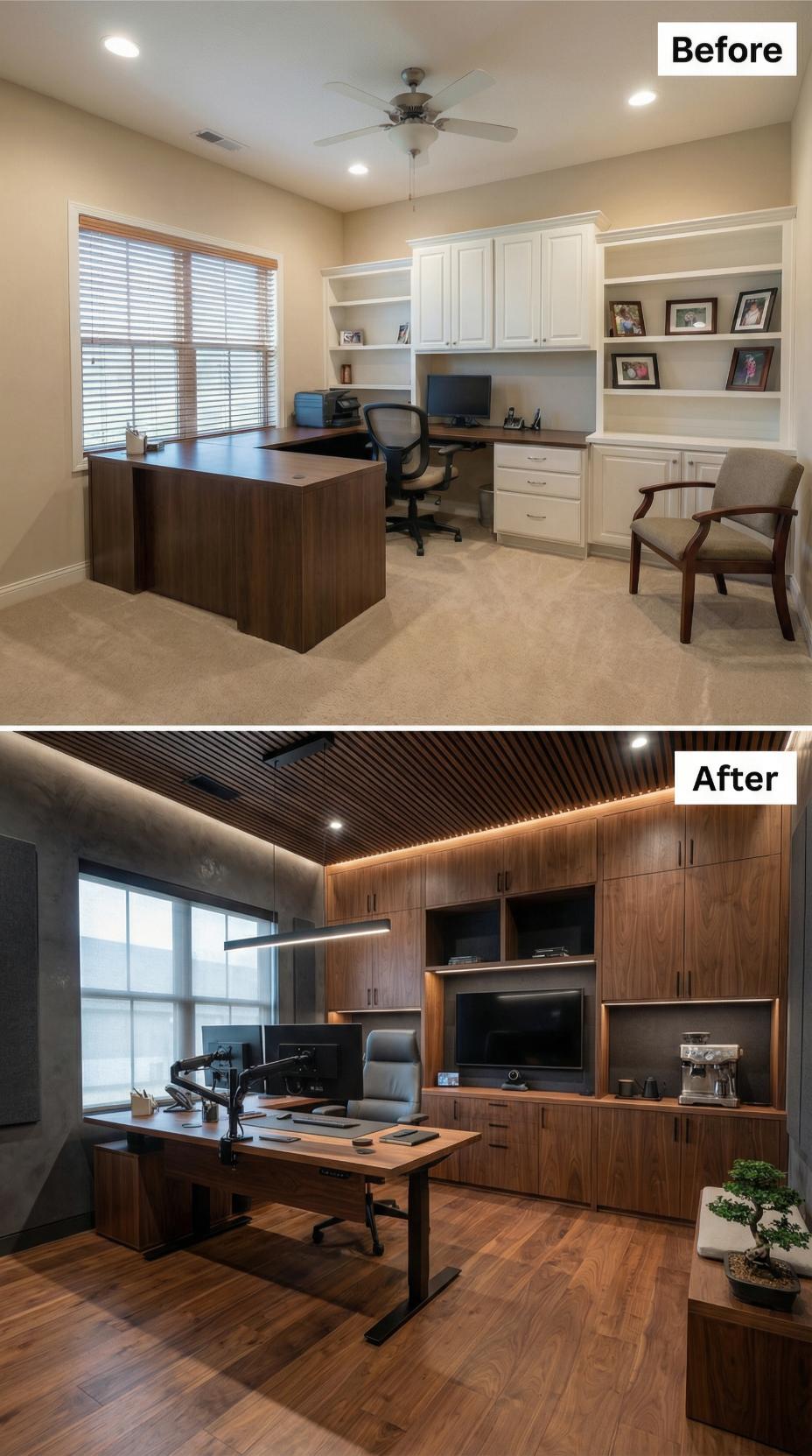 From Basic Builder-Grade Setup to Rich Wood-Wrapped Executive Suite