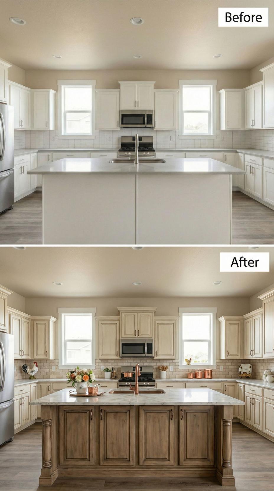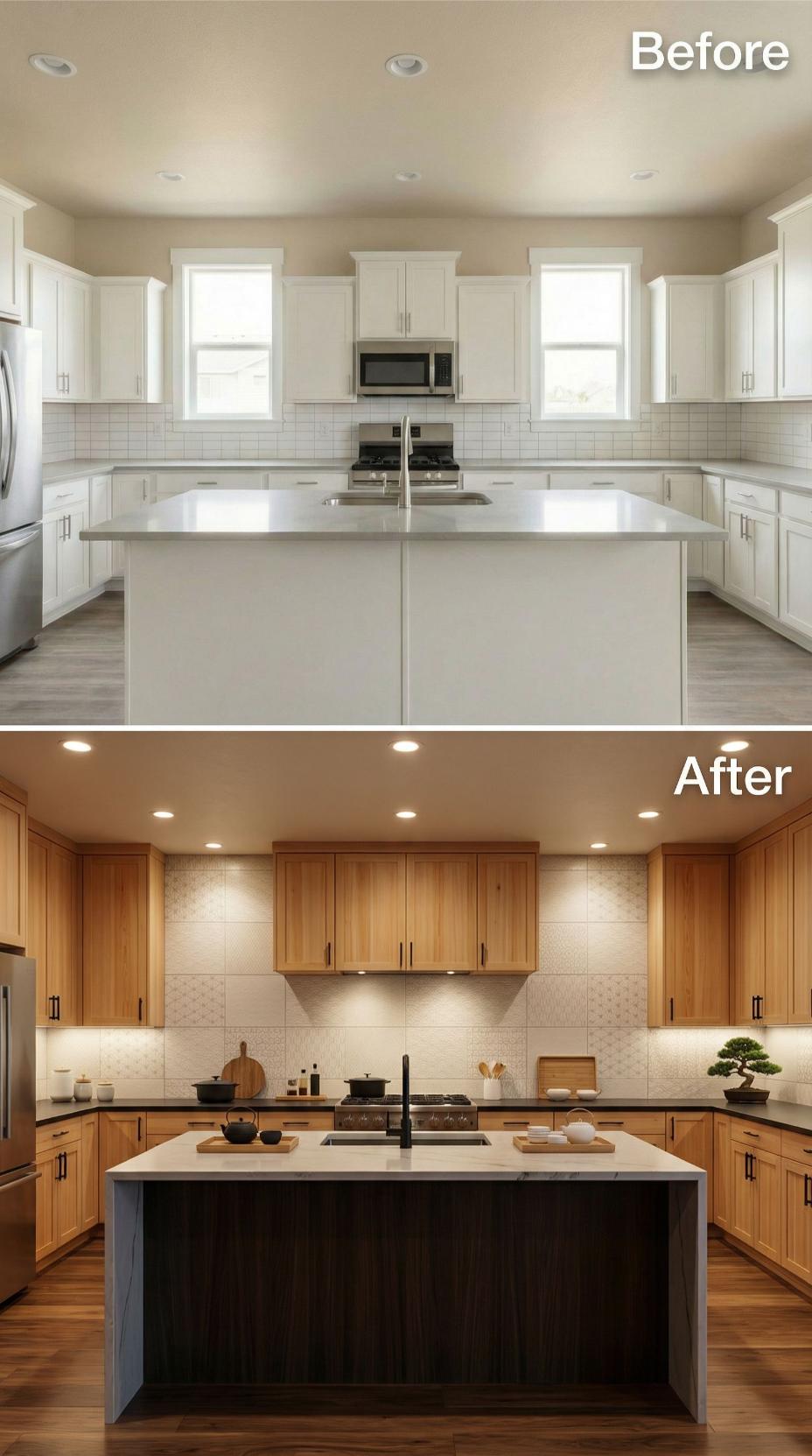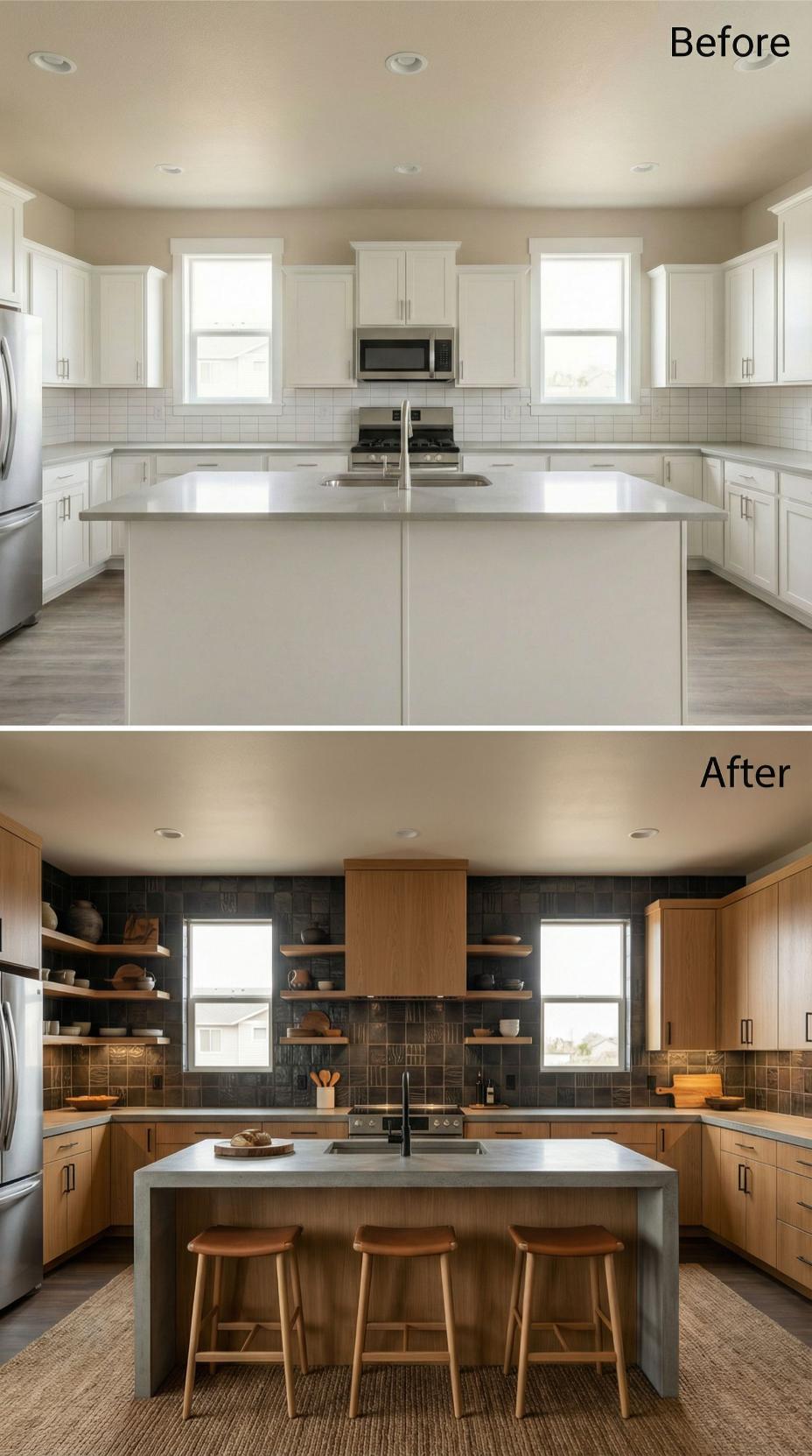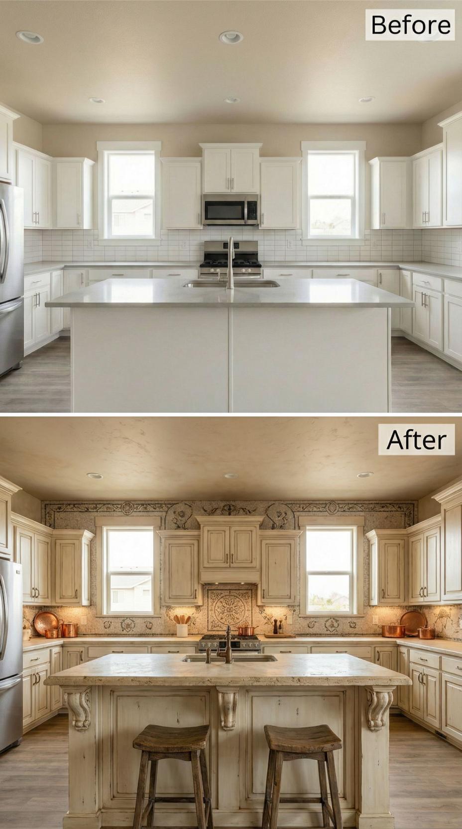 A kitchen backsplash may seem like a small detail, but it has the power to define the entire space. In this article, we explore dramatic before-and-after transformations that elevate a plain builder-grade kitchen into an ultra-luxury showpiece. From French Country stone to bold marble and richly colored tiles, these designs highlight how materials, texture, and craftsmanship turn an ordinary kitchen into a refined, high-end masterpiece.