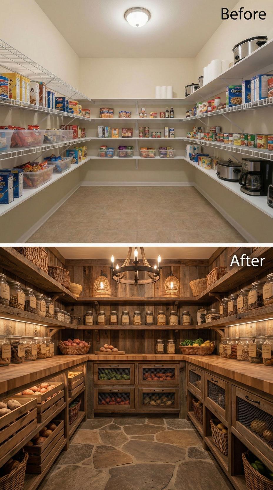 From Builder Grade Kitchen Pantry to Rustic Farmhouse Food Storage Haven