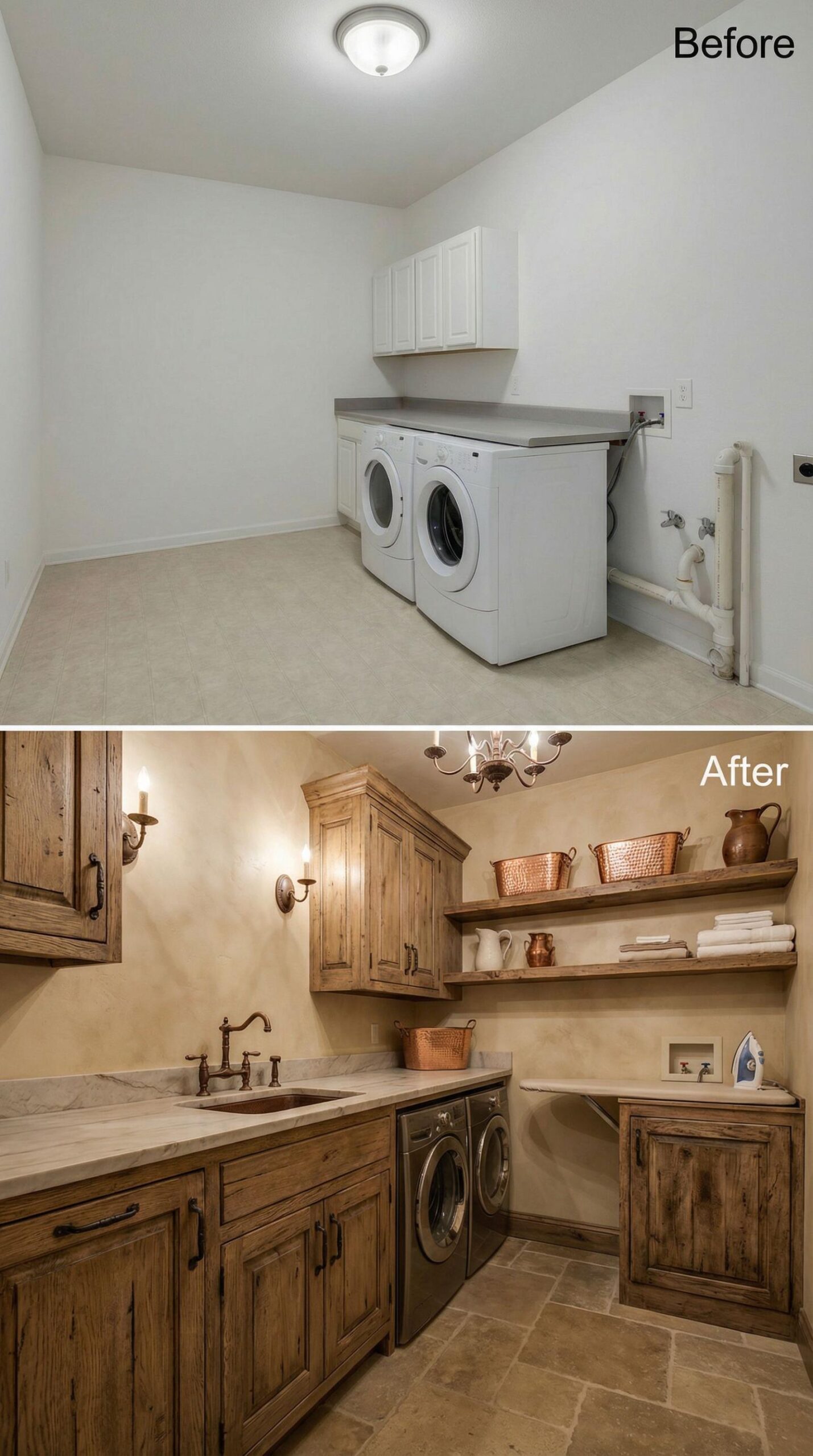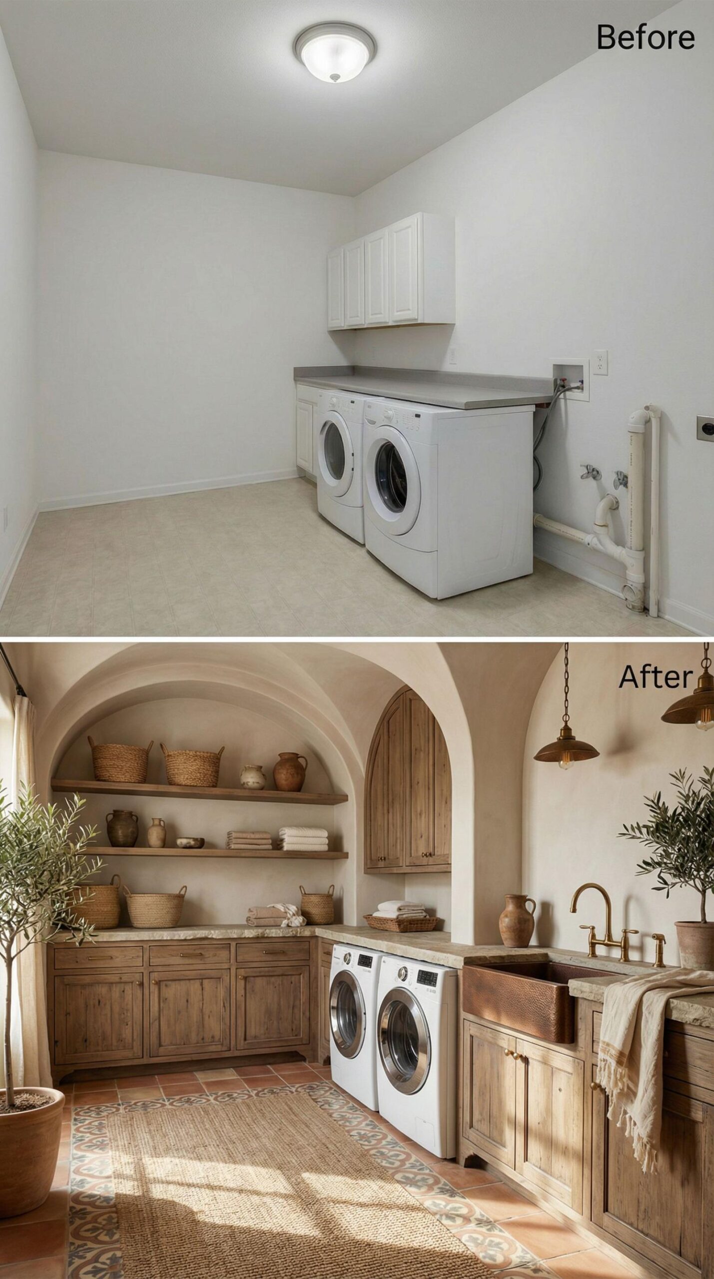 From Builder-Grade Utility Room to Tuscan-Inspired Laundry Haven