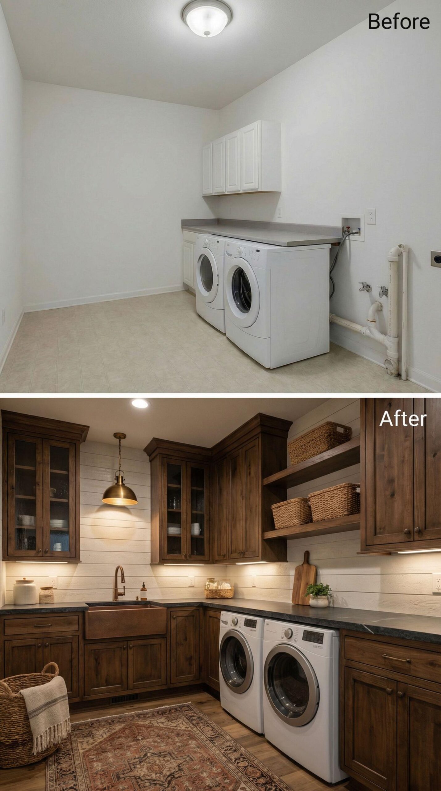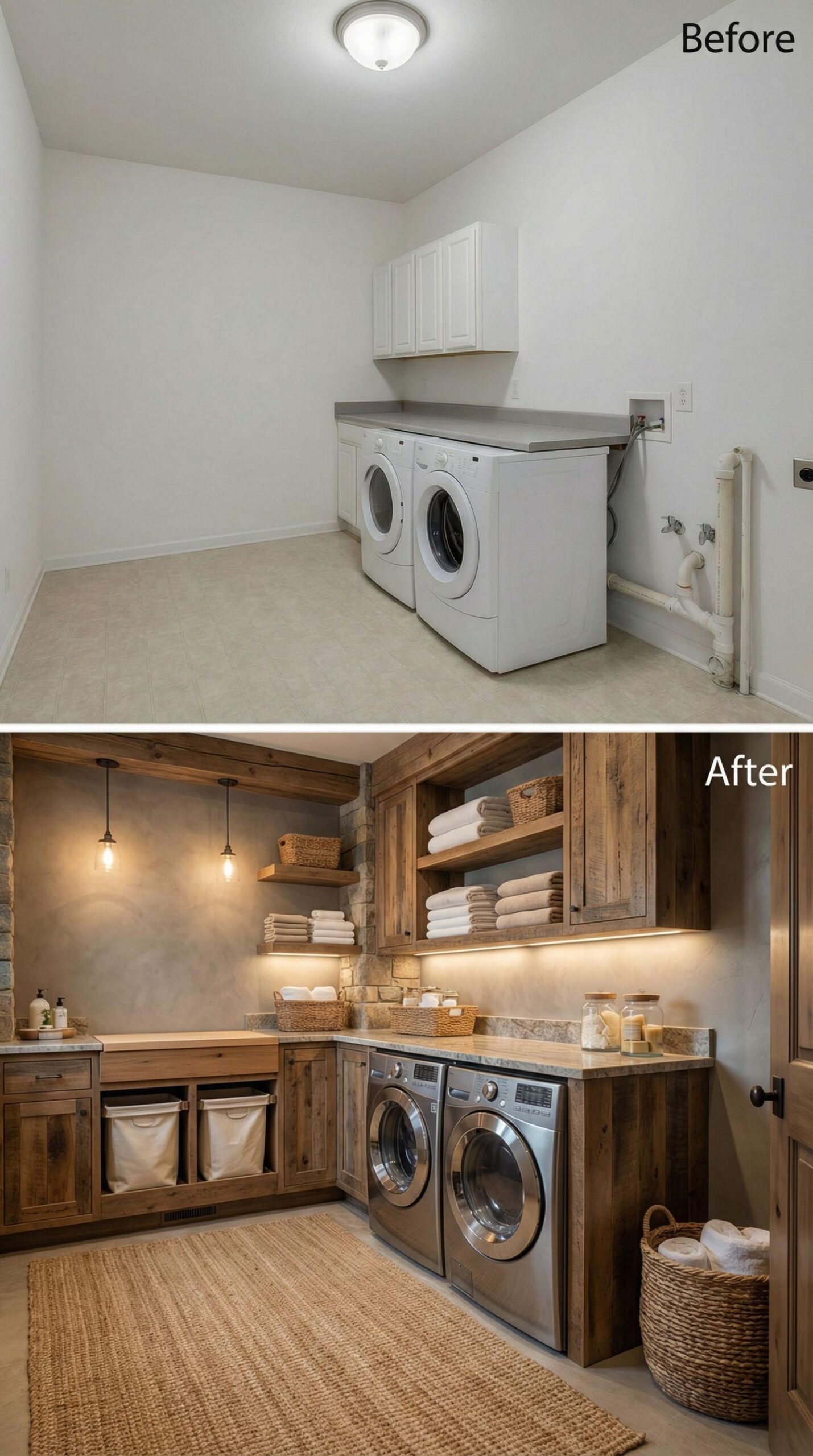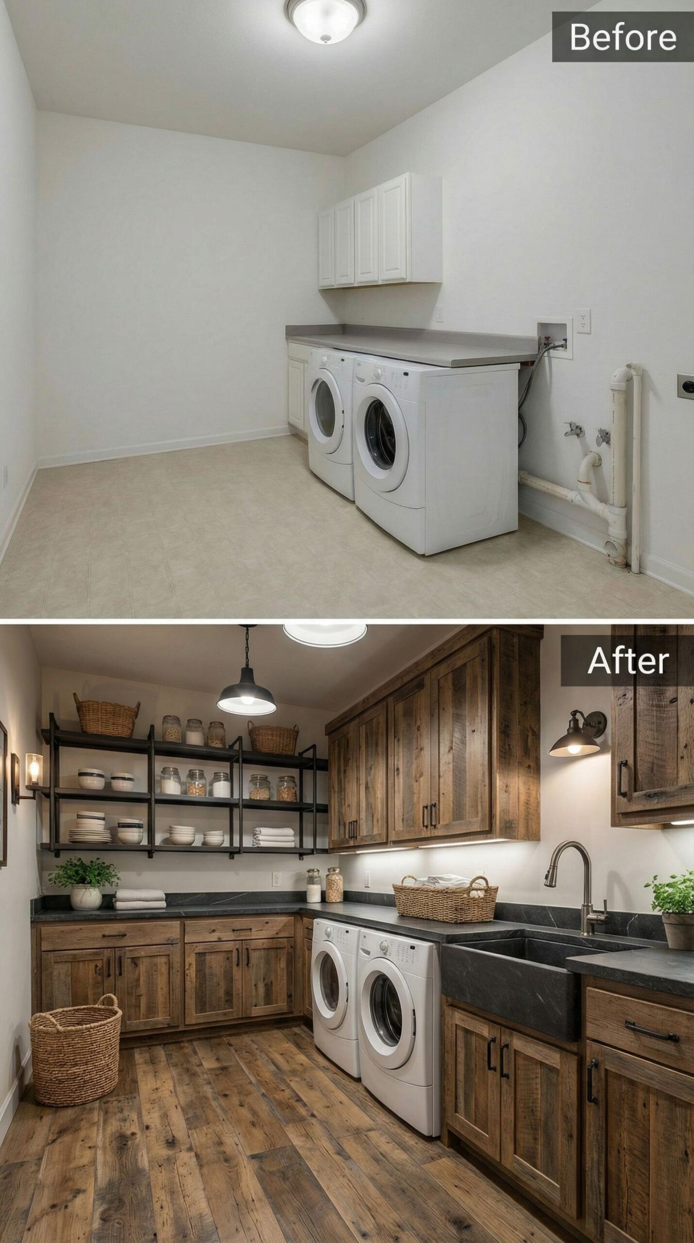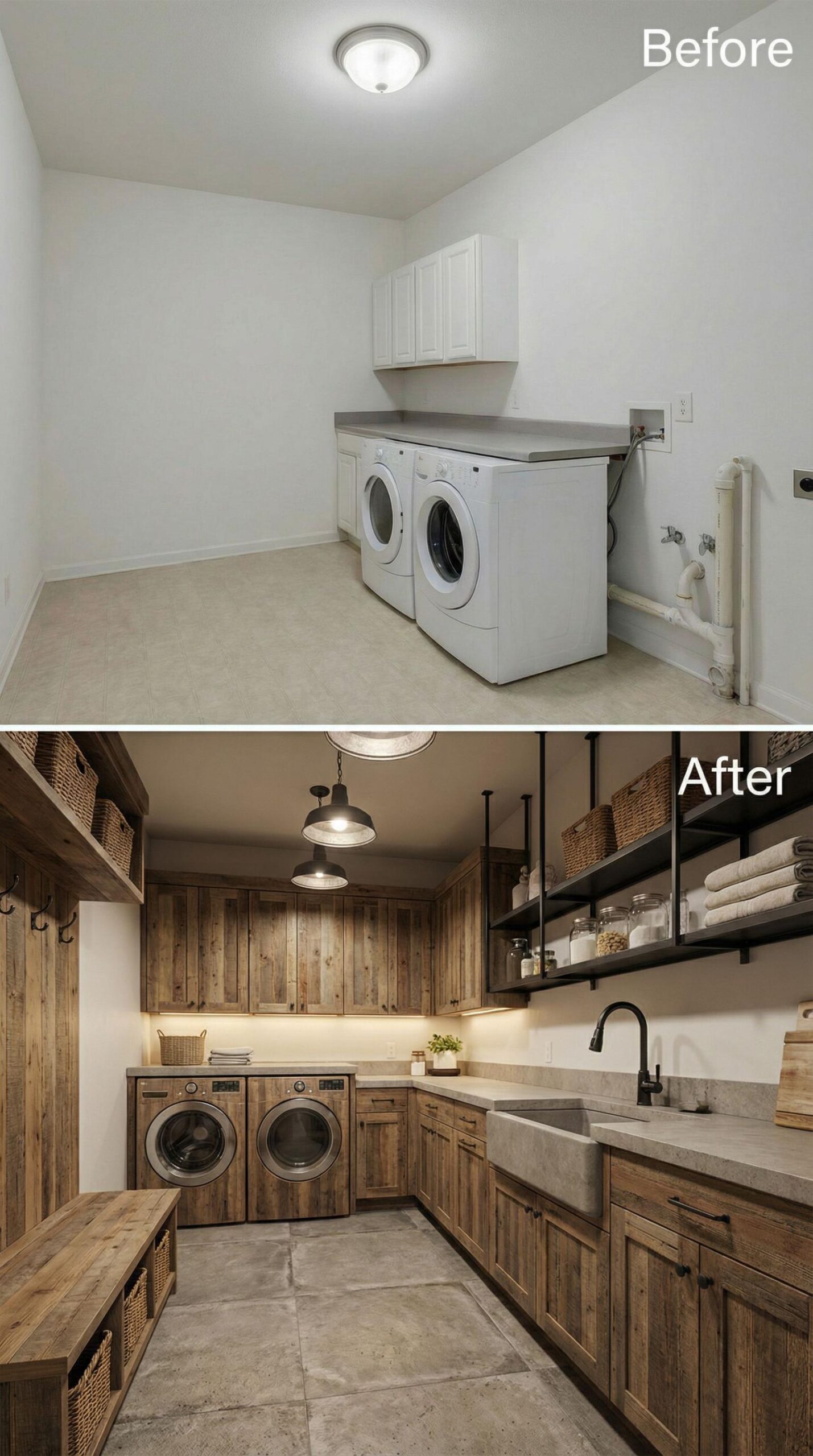 From Builder-Grade Basics to Rustic Farmhouse Laundry Haven