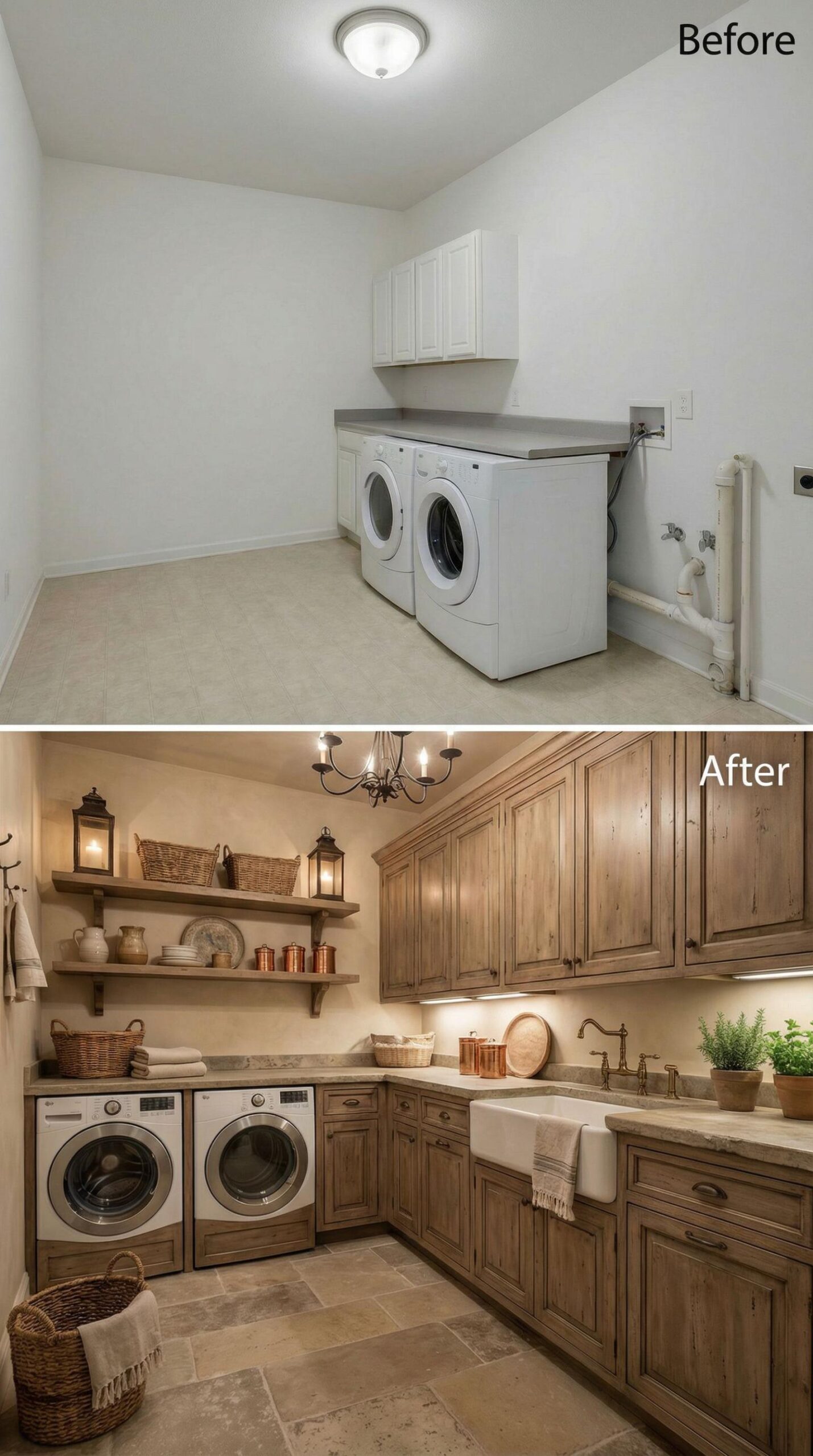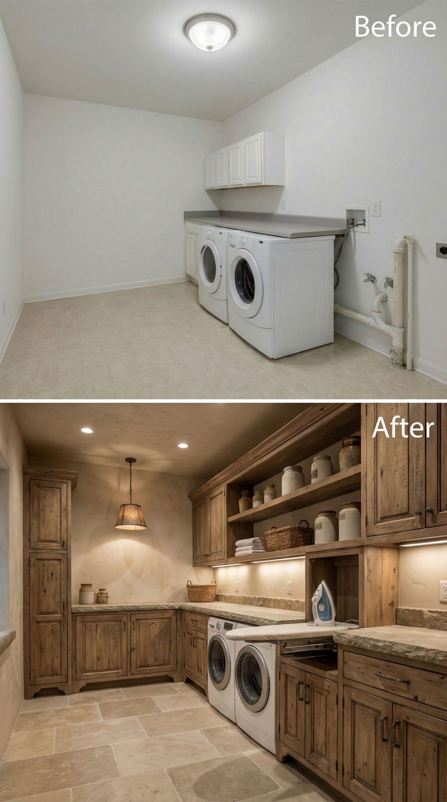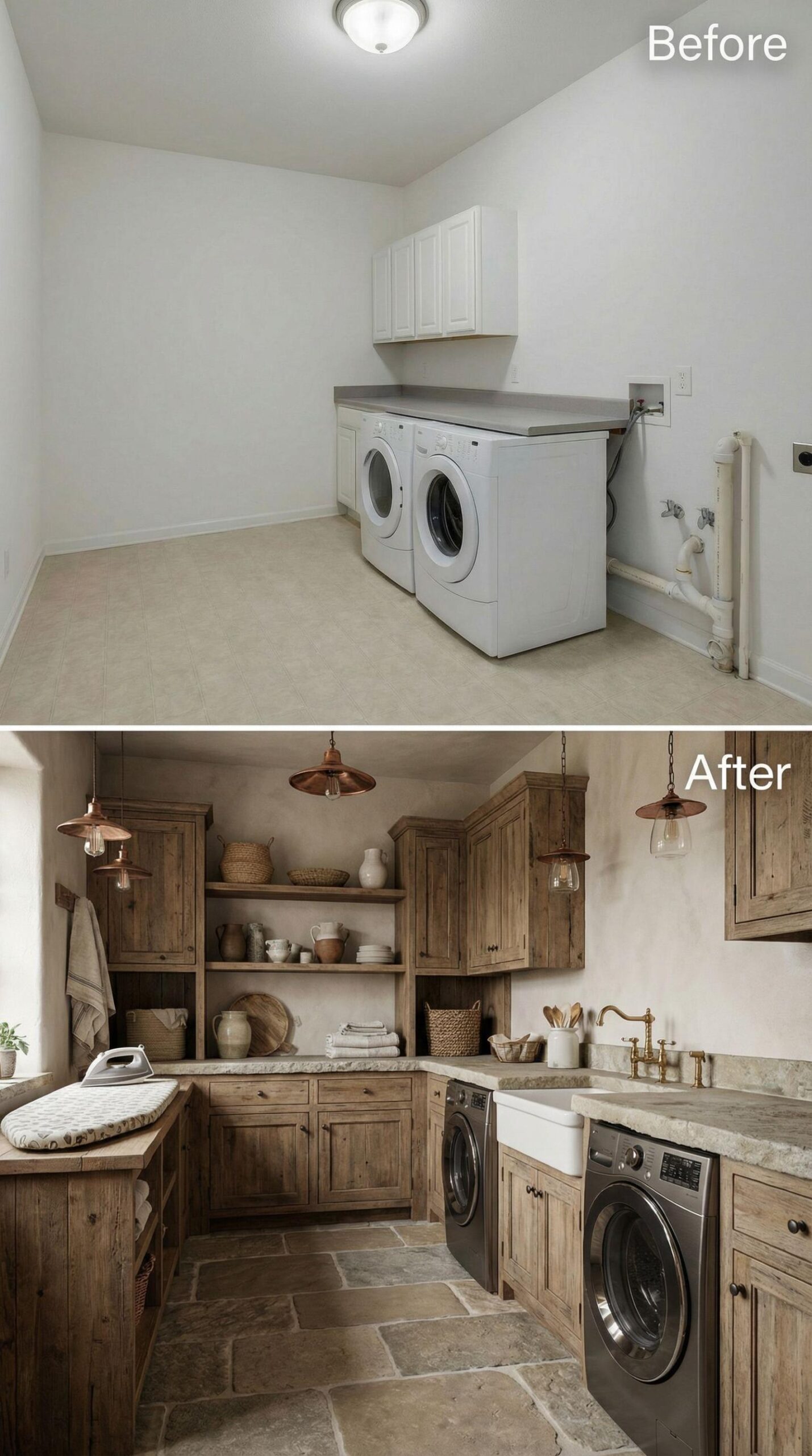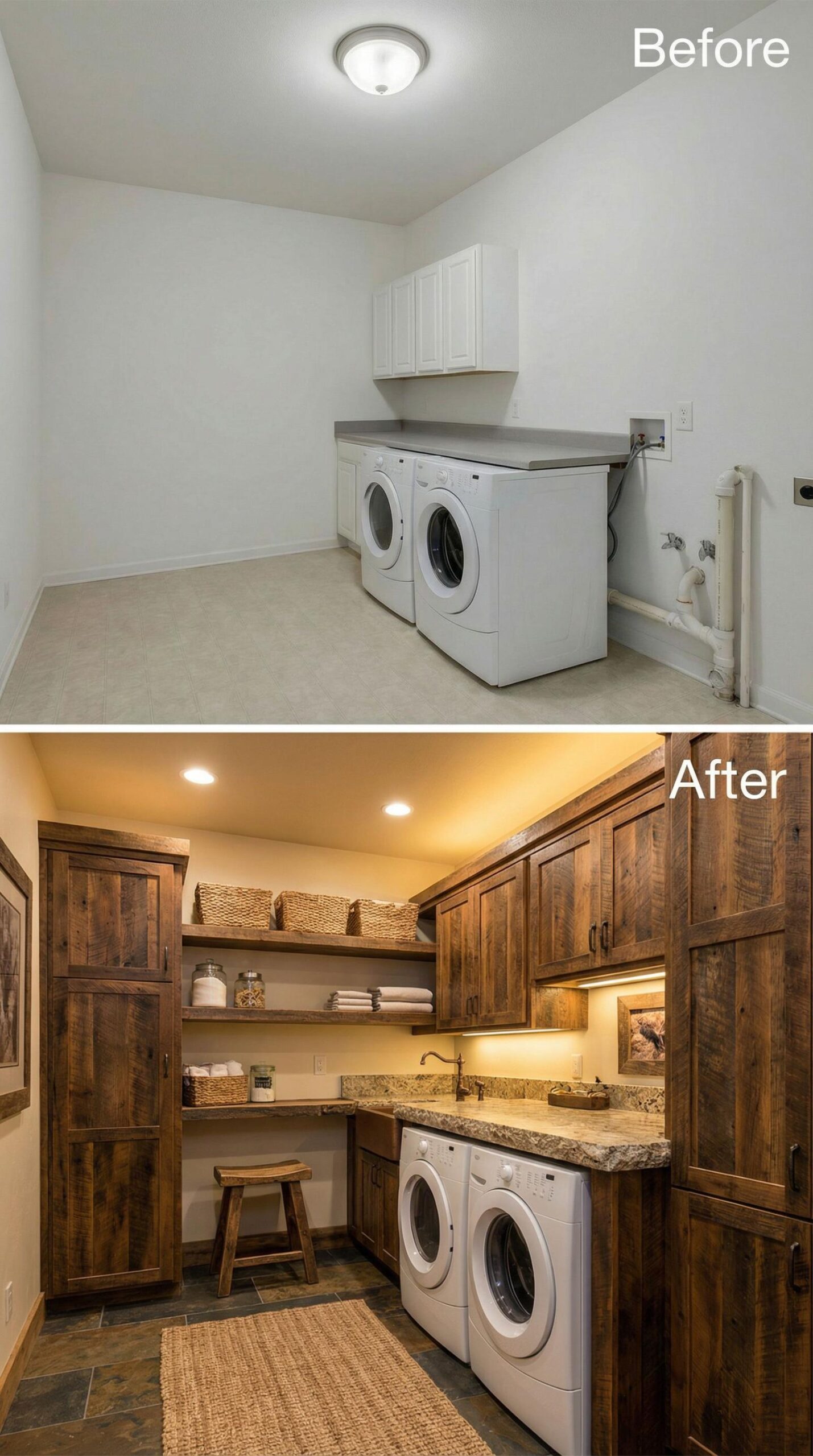 From Builder-Grade Basics to Rustic Farmhouse Laundry Haven