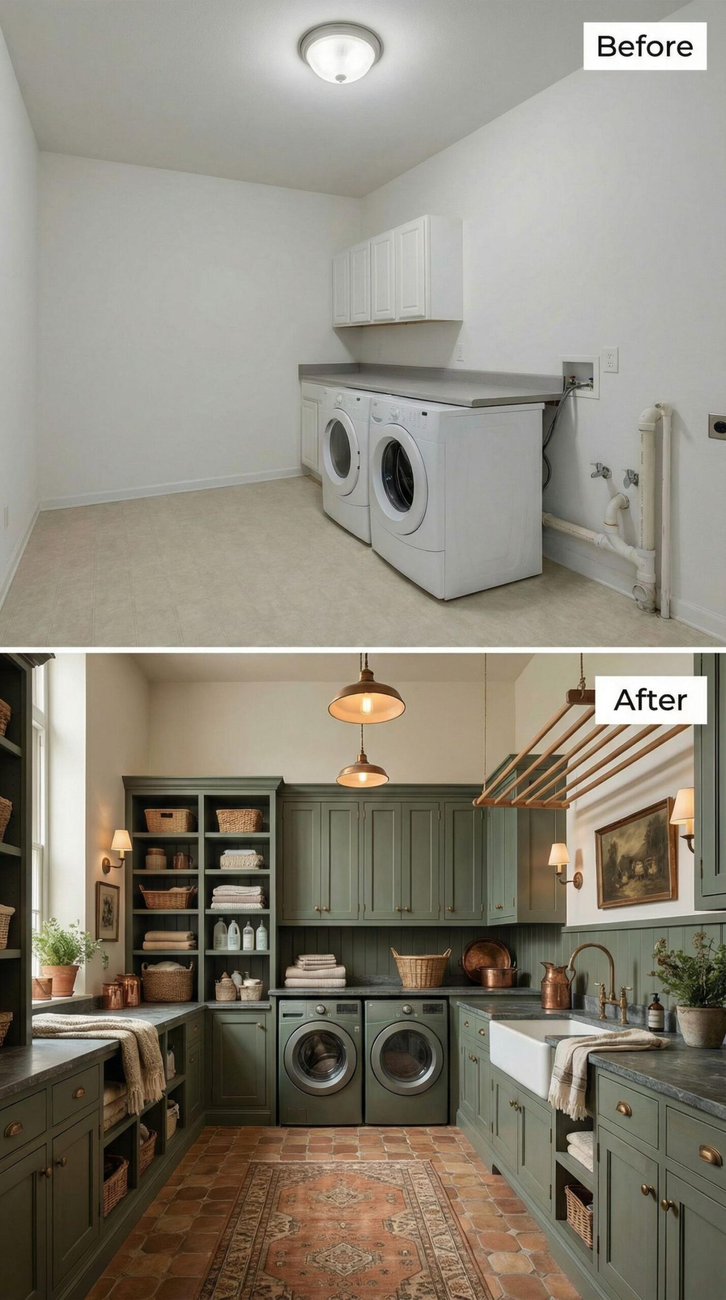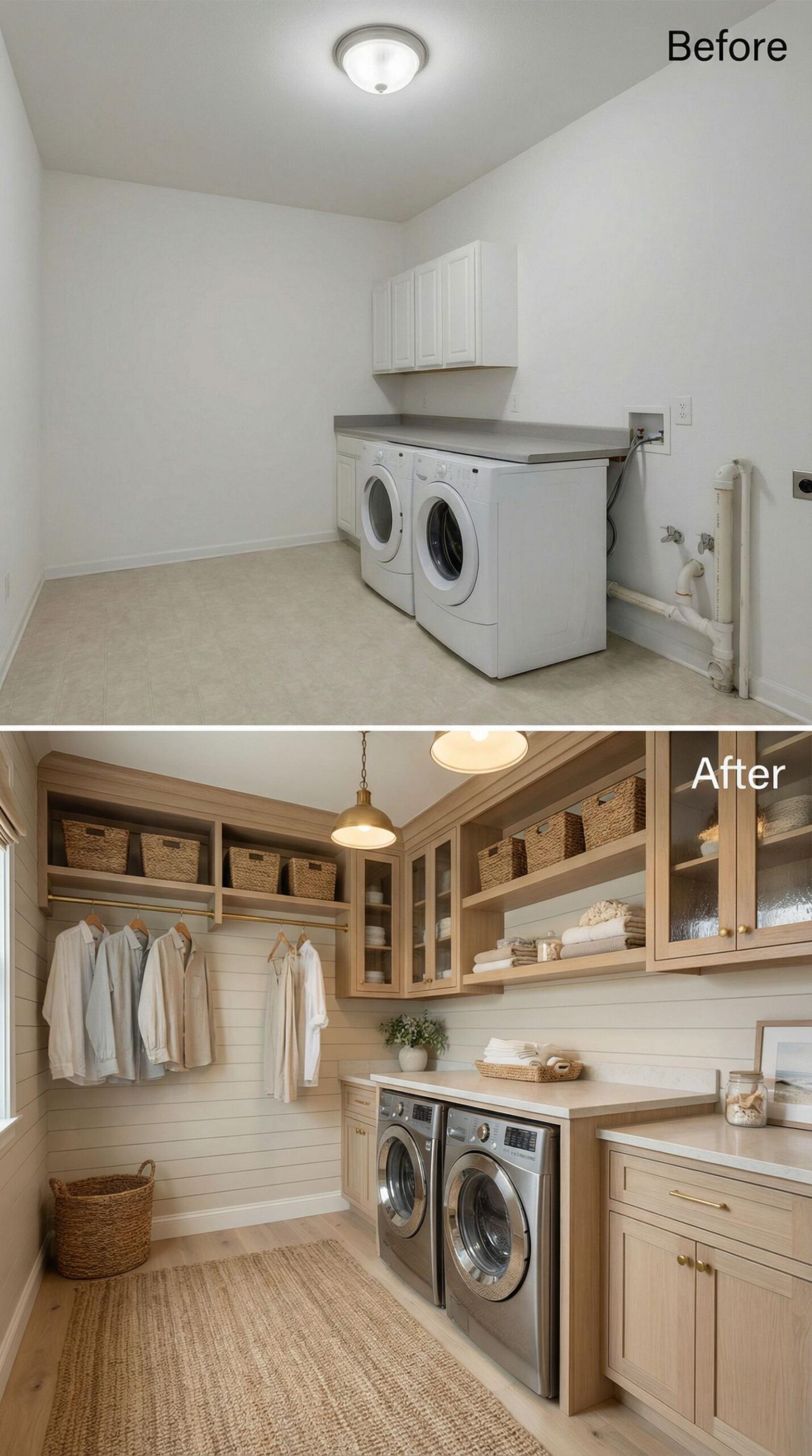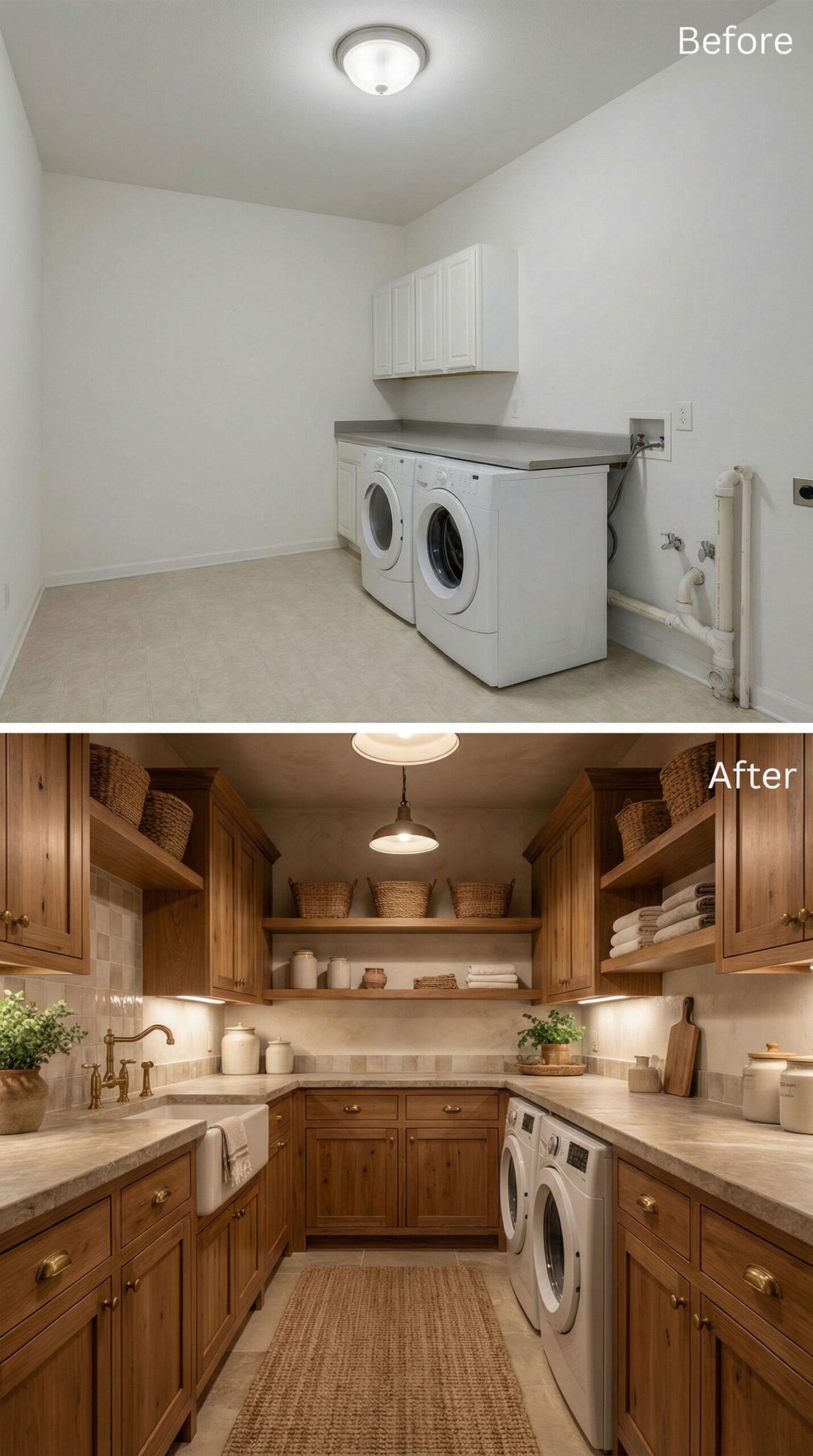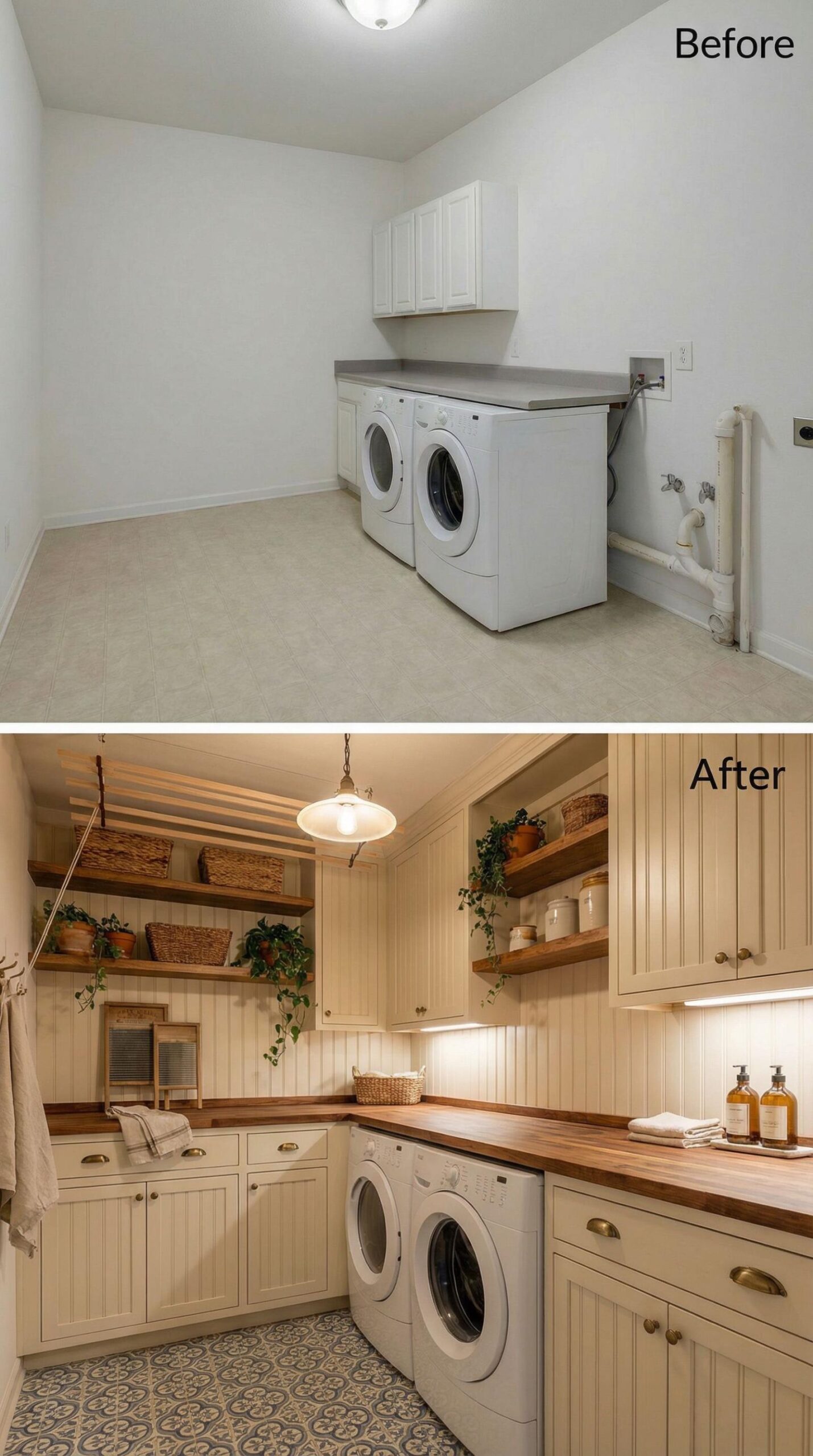 From Builder-Grade Basics to Rustic Farmhouse Laundry Haven