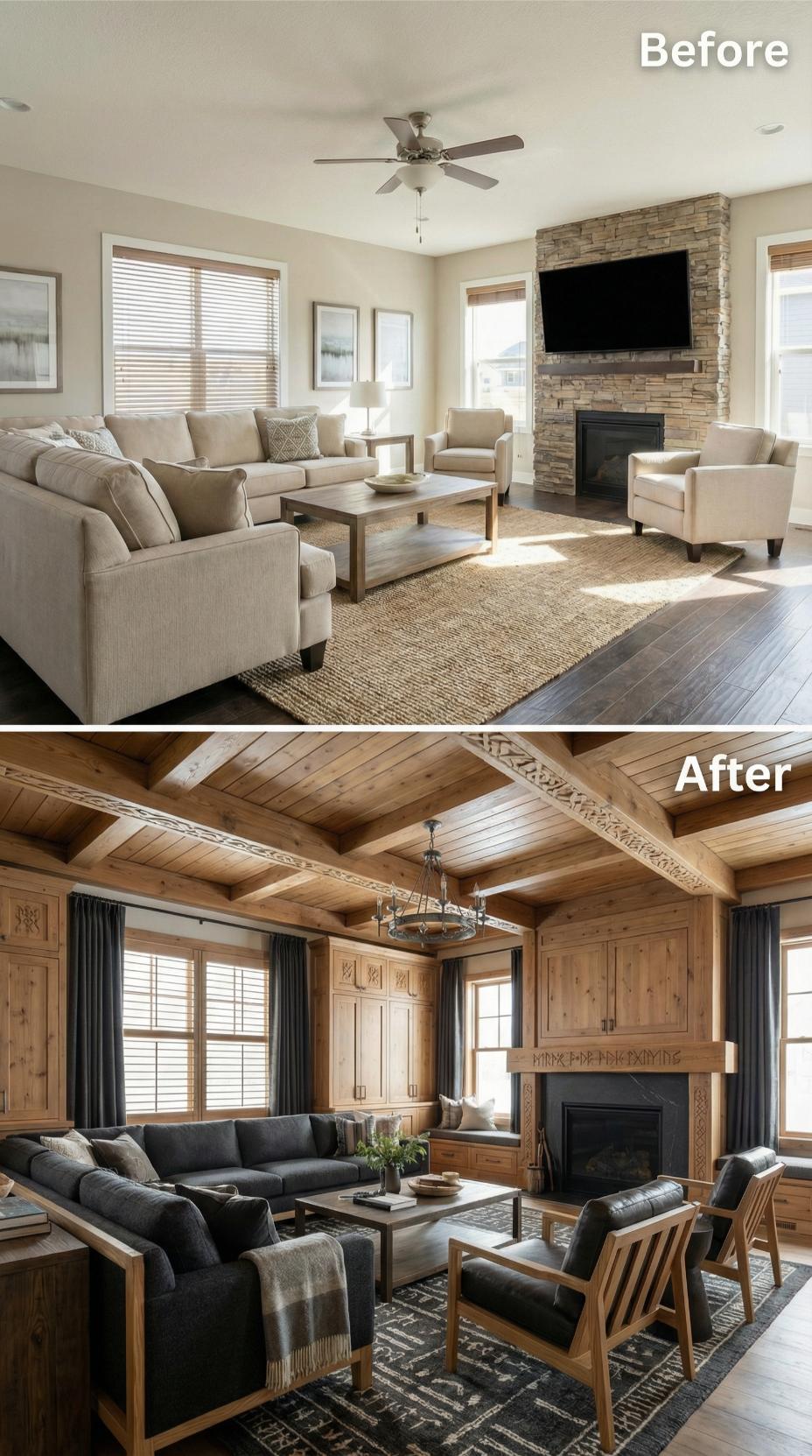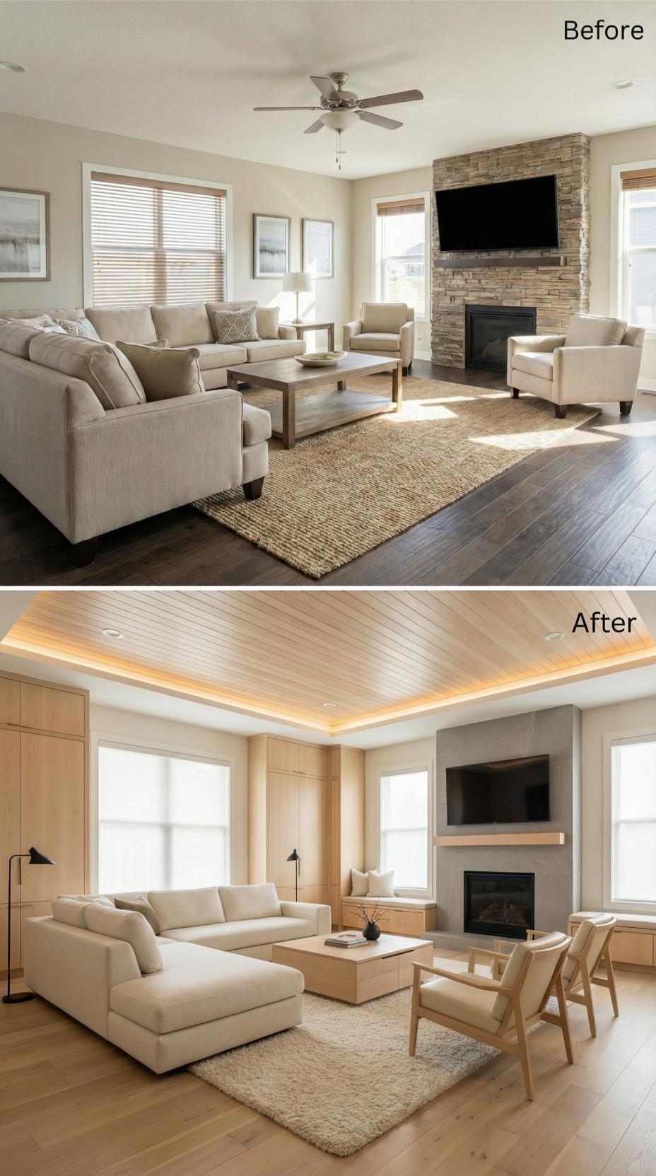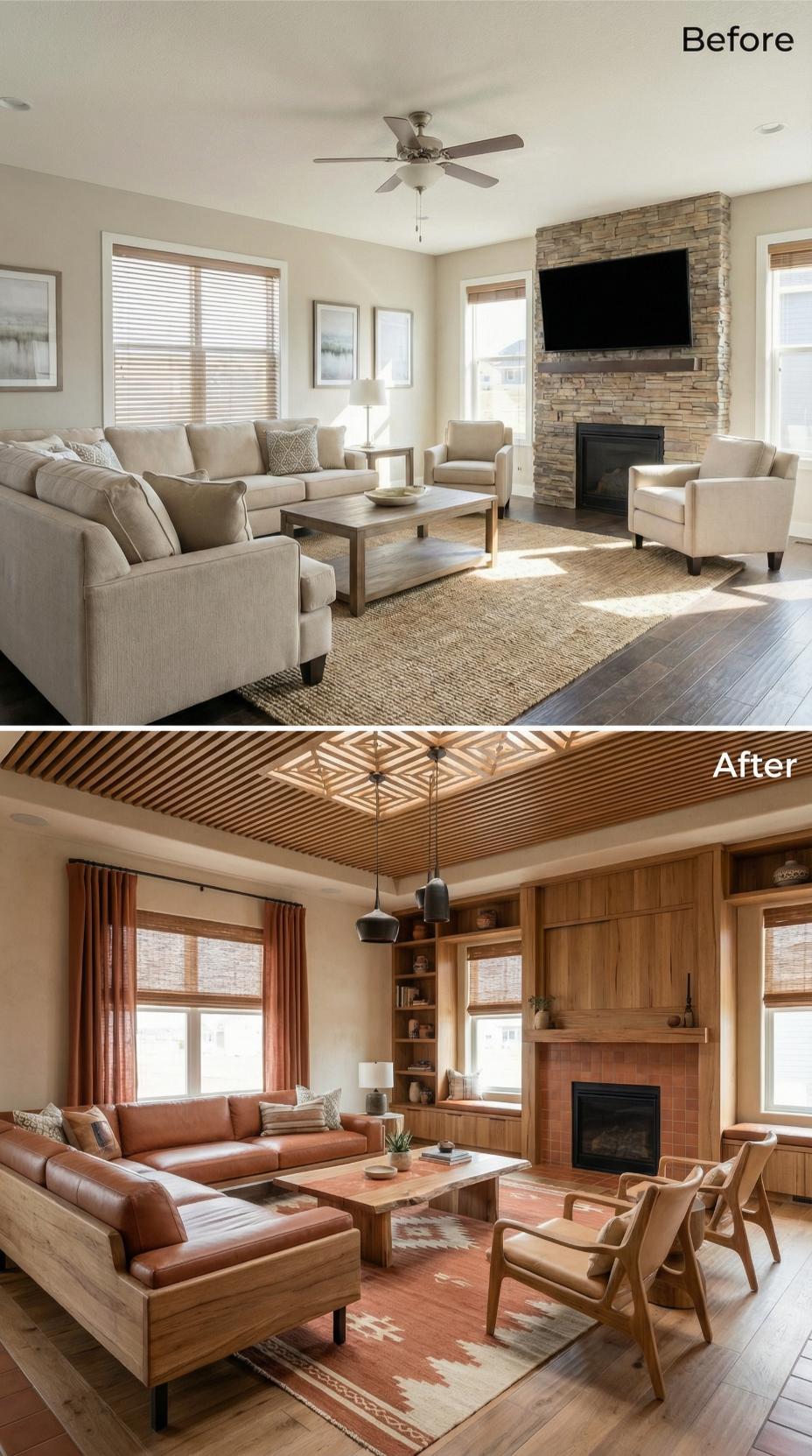 From Beige Builder-Grade to Warm Wood-Wrapped Sanctuary
