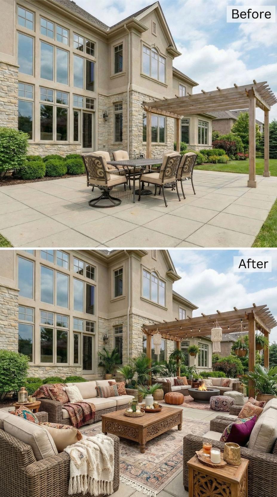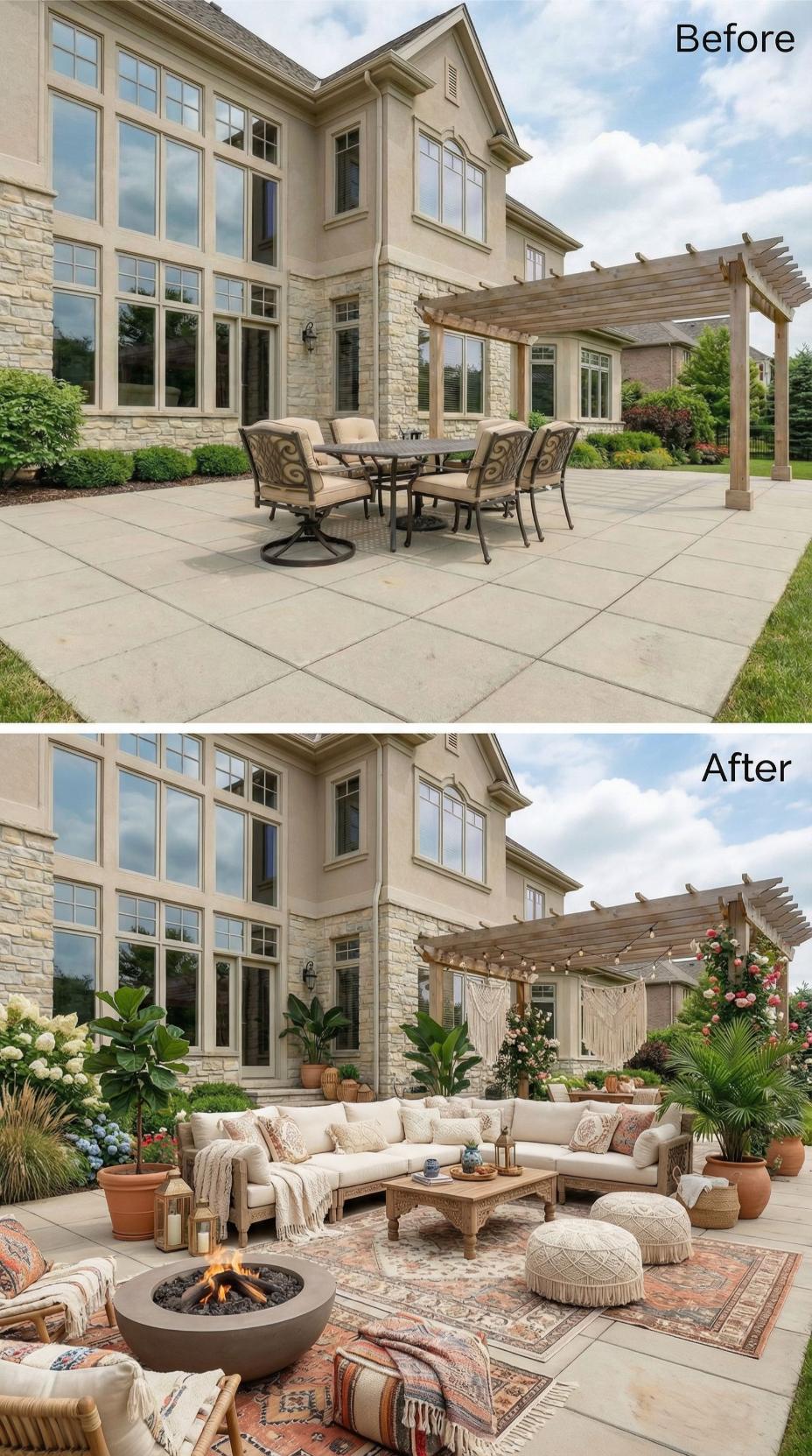 From Builder-Grade Patios to Bohemian Outdoor Living Room Paradise
