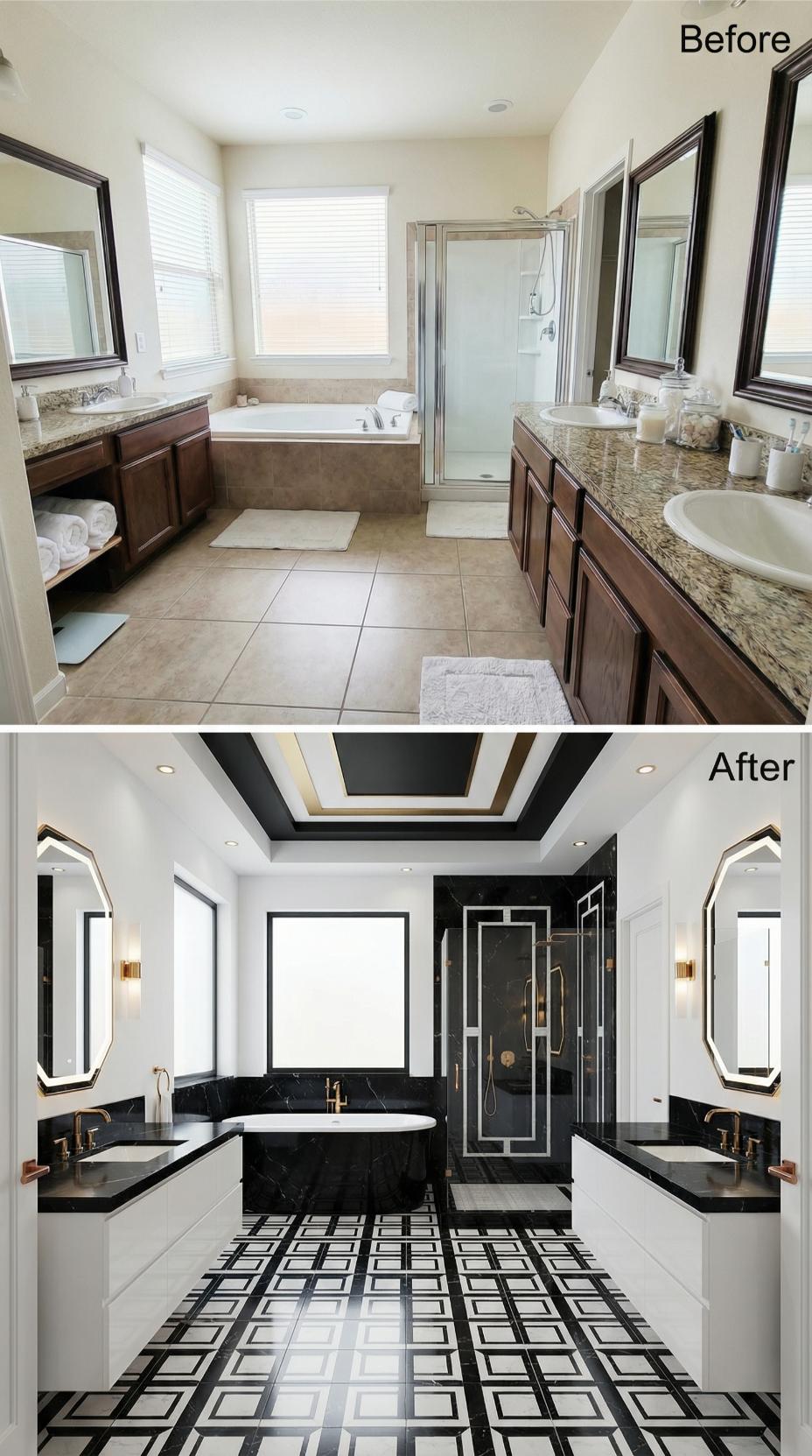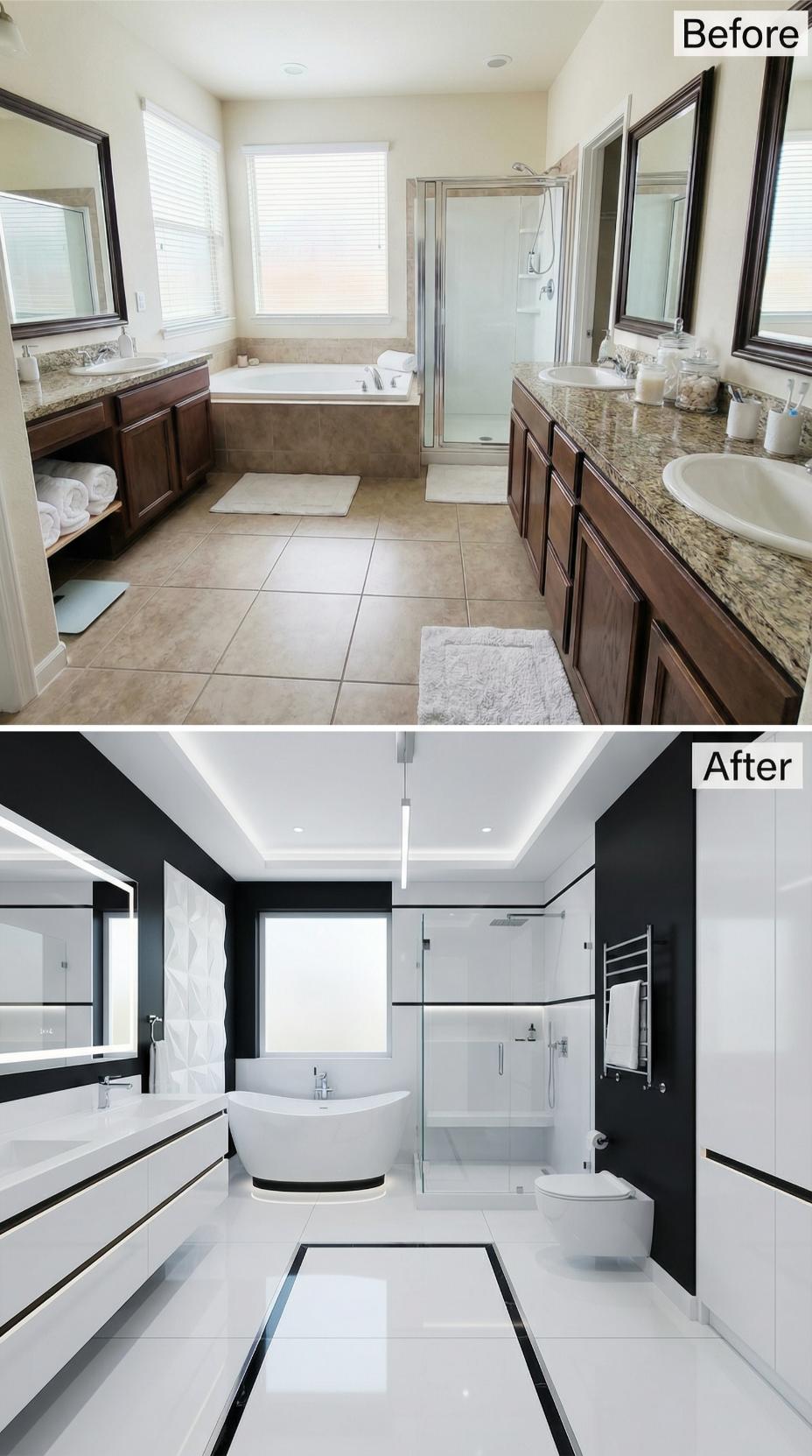 From Traditional Beige Builder-Grade to Bold Black and White Luxury