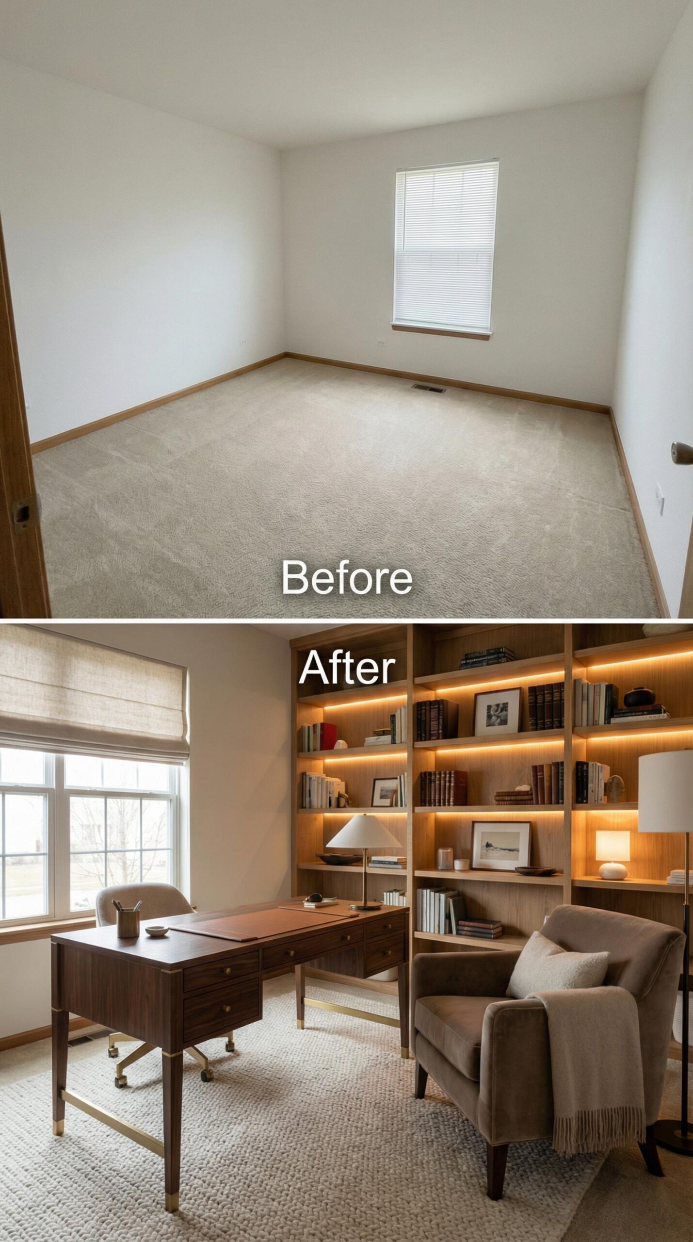 Built-In Library Shelves Transform Empty Room Into Sophisticated Study