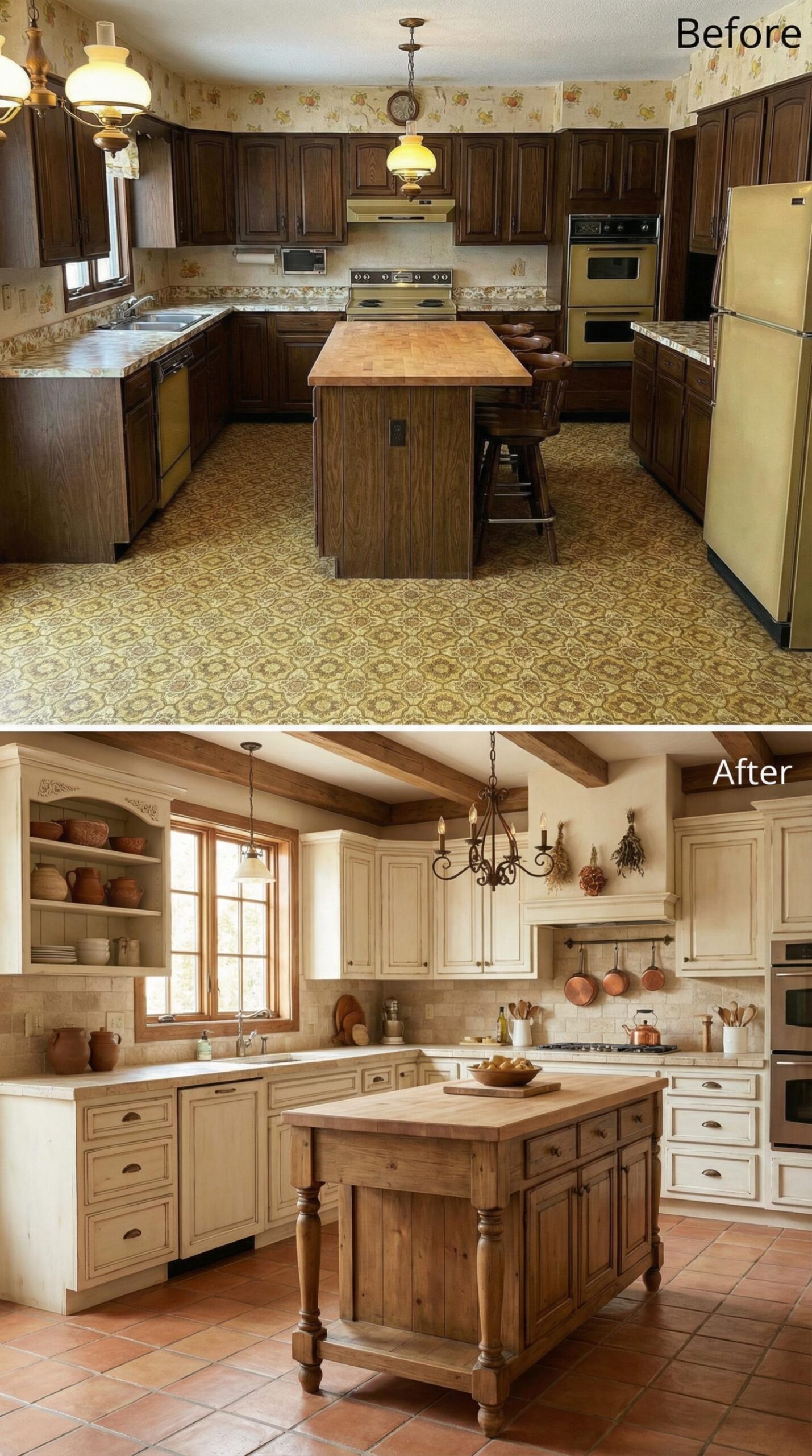 From Dated 80s Kitchen to Rustic French Country Farmhouse Charm